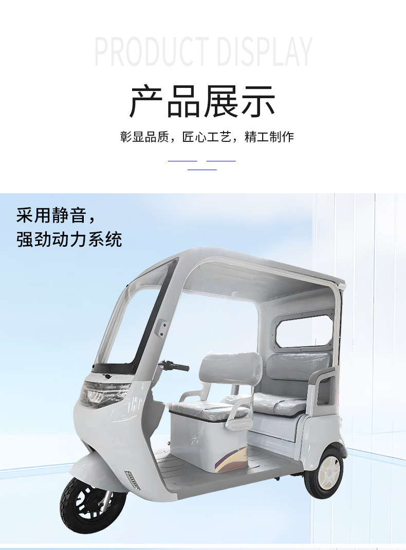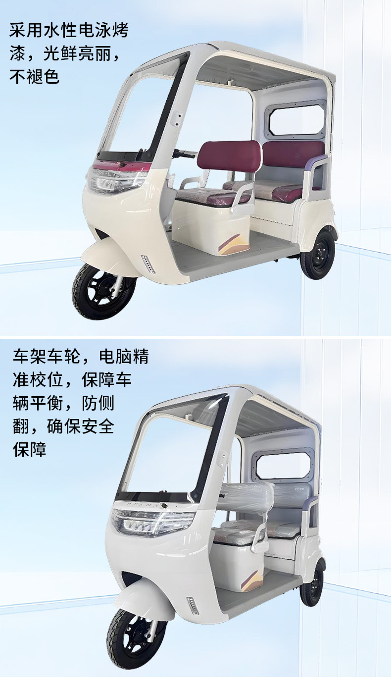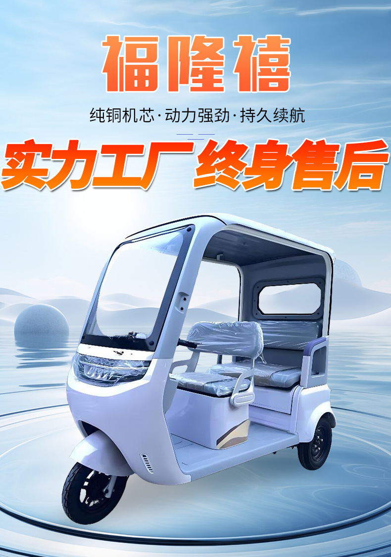 Электрический трицикл со встроенным навесом, расширенными двухрядными сиденьями, производитель мощных источников, может быть зарегистрирован для домашнего использования с навесом.