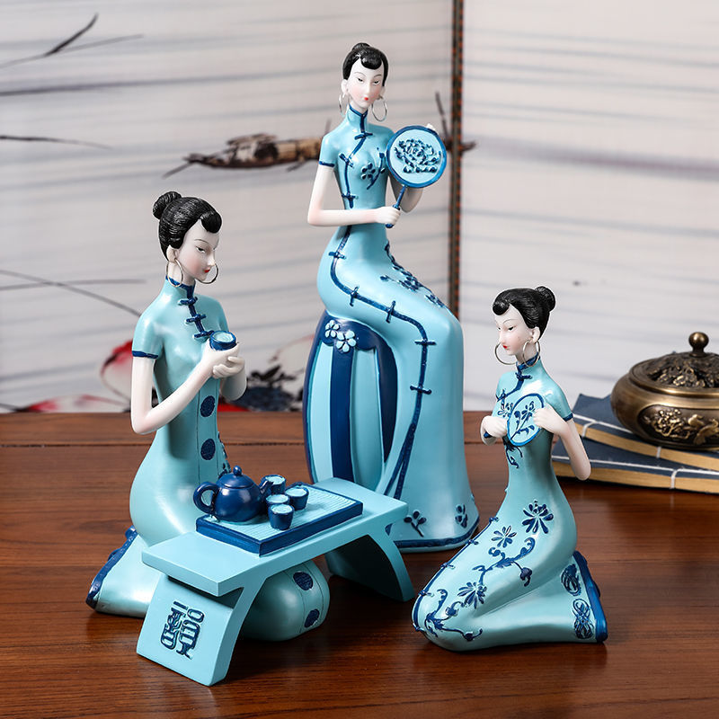 Ретро китайская леди чонсам украшение креативная гостиная книжный шкаф