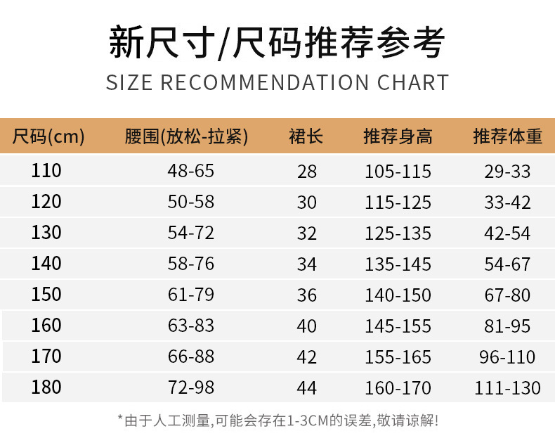 110cm; 120cm; 130cm; 140cm; 150cm; 160cm; 170cm; 180cm