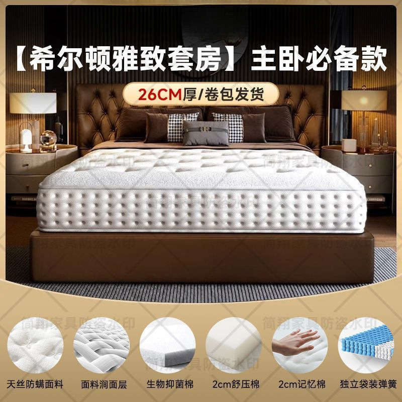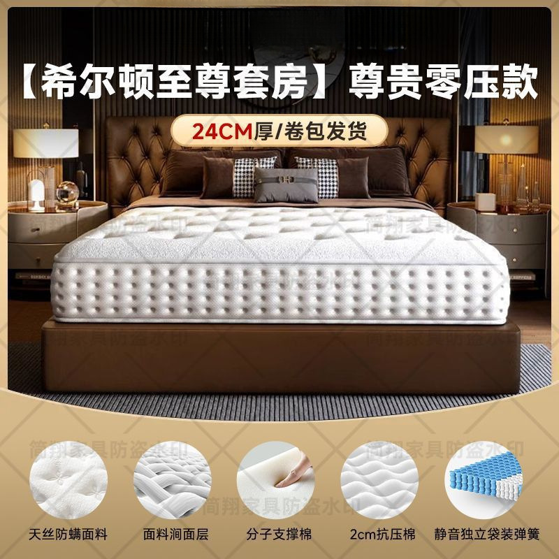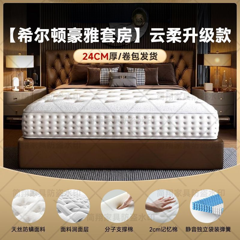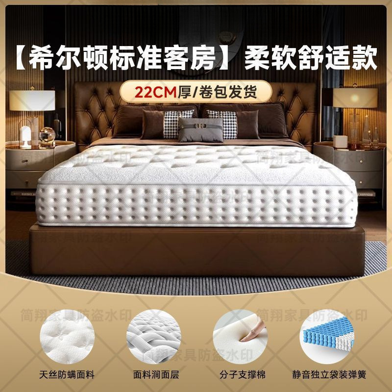 Хлопок памяти Hilton Five Hotel Memory Memory Sile Независимая пружинный матрас Сжатый ультра мягкий утолщение рулона сумка