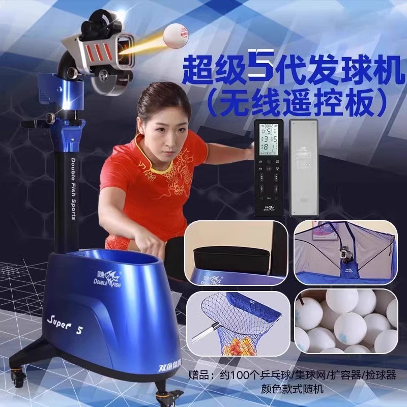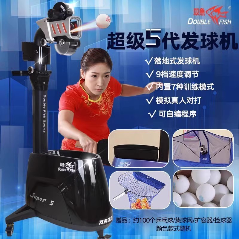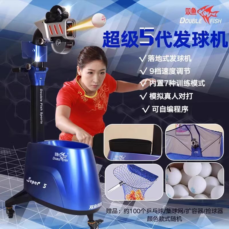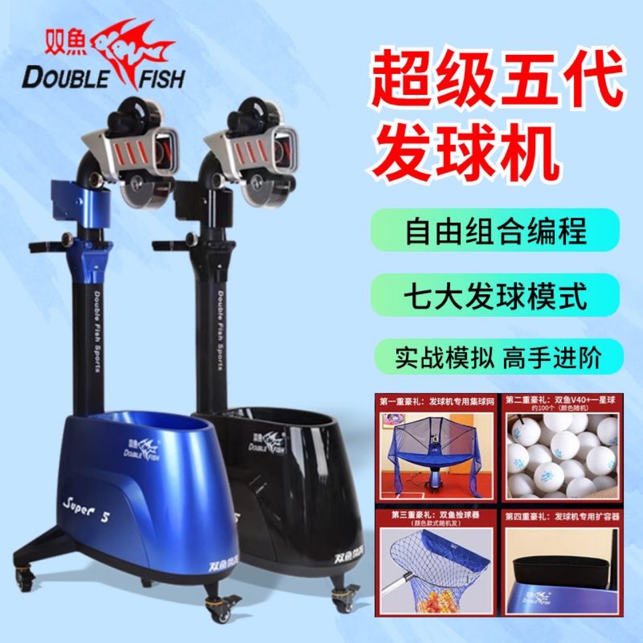 【Double Fish 5-го поколения】Машина для подачи теннисных мячей для профессиональных тренировок и домашнего использования, полностью автоматическое устройство для тренировок по настольному теннису.