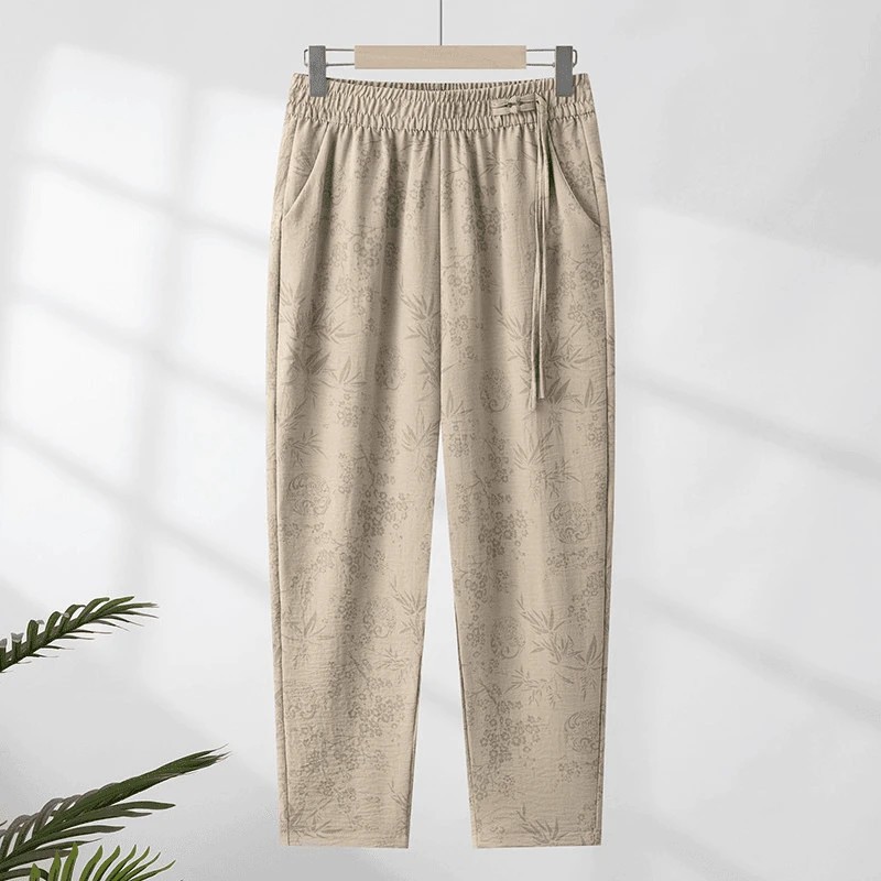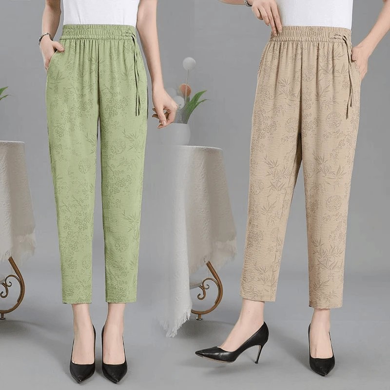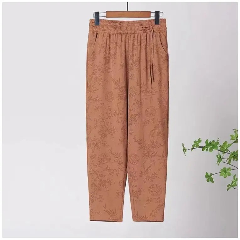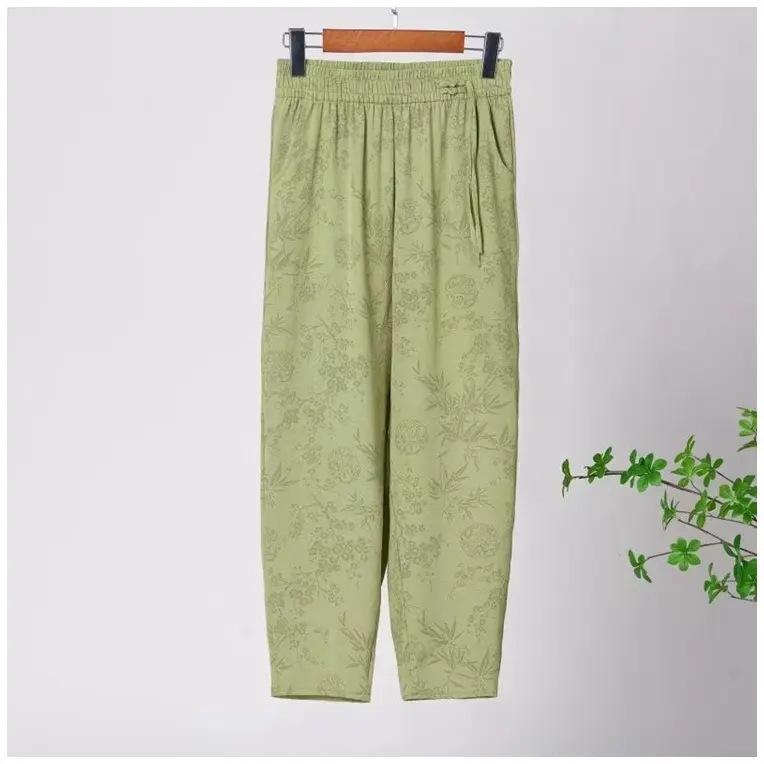[Летний новый] Новые китайские брюки женские харуны редька брюки маленькие укороченные брюки свободные мамы среднего возраста брюки
