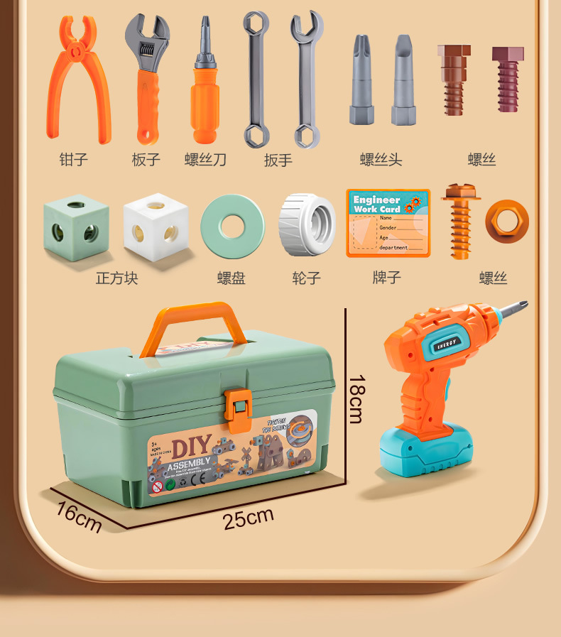 Детский набор инструментов: электрическая дрель, сборка и разборка, ремонт гаек, развивающие 3D-игрушки для малышей, сделай сам