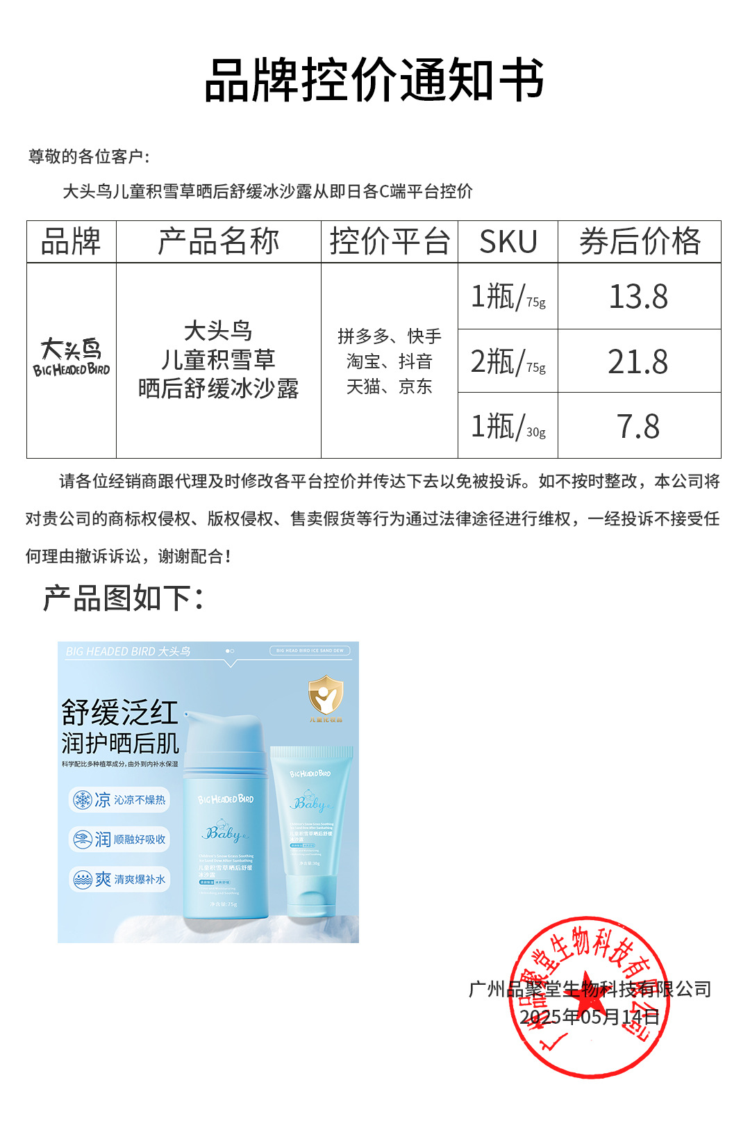 Большая голова птица детский крем Летний смузи крем детский крем успокаивающий увлажняющий крем после загара