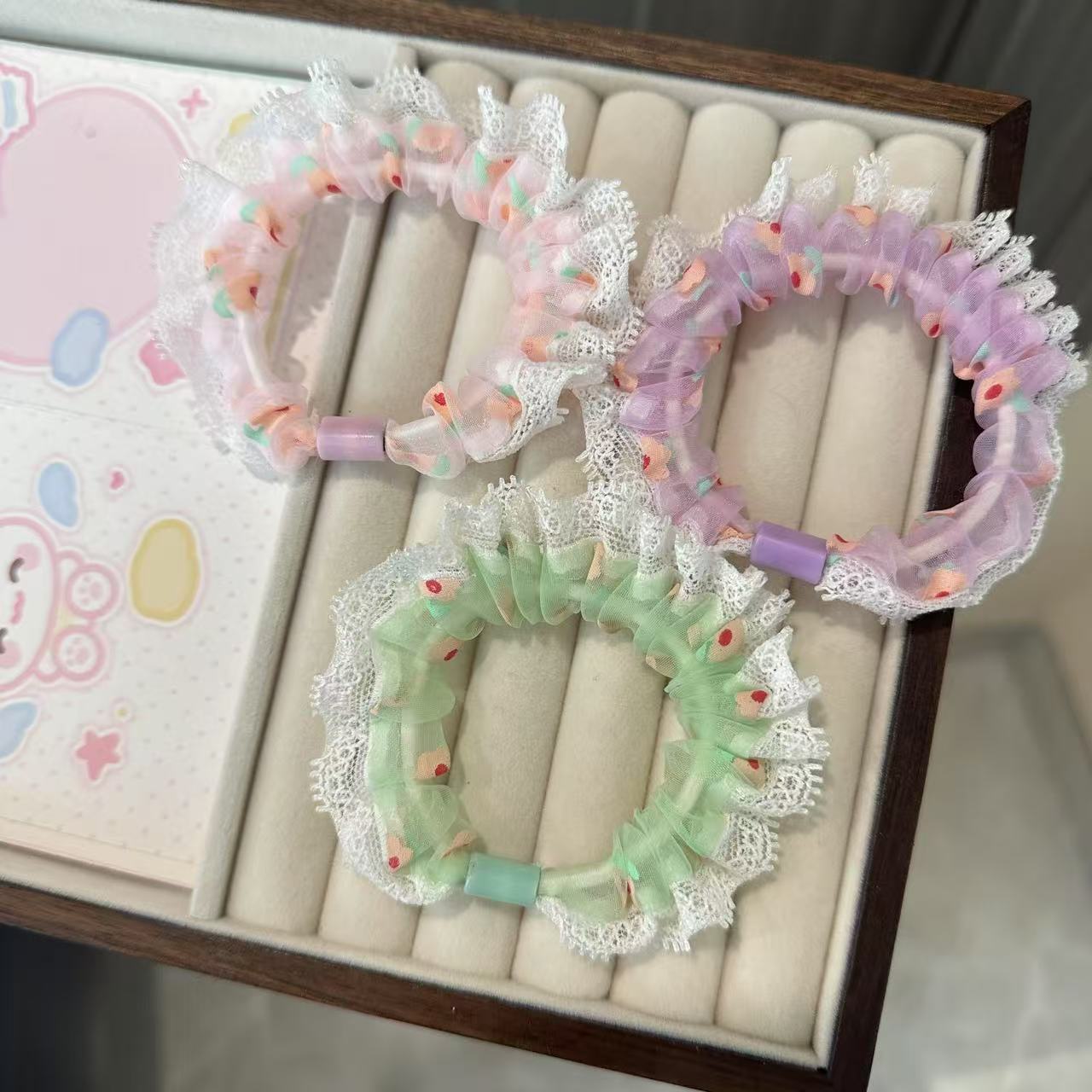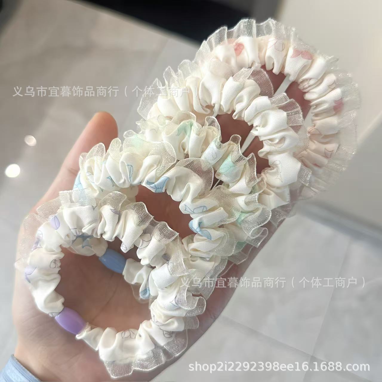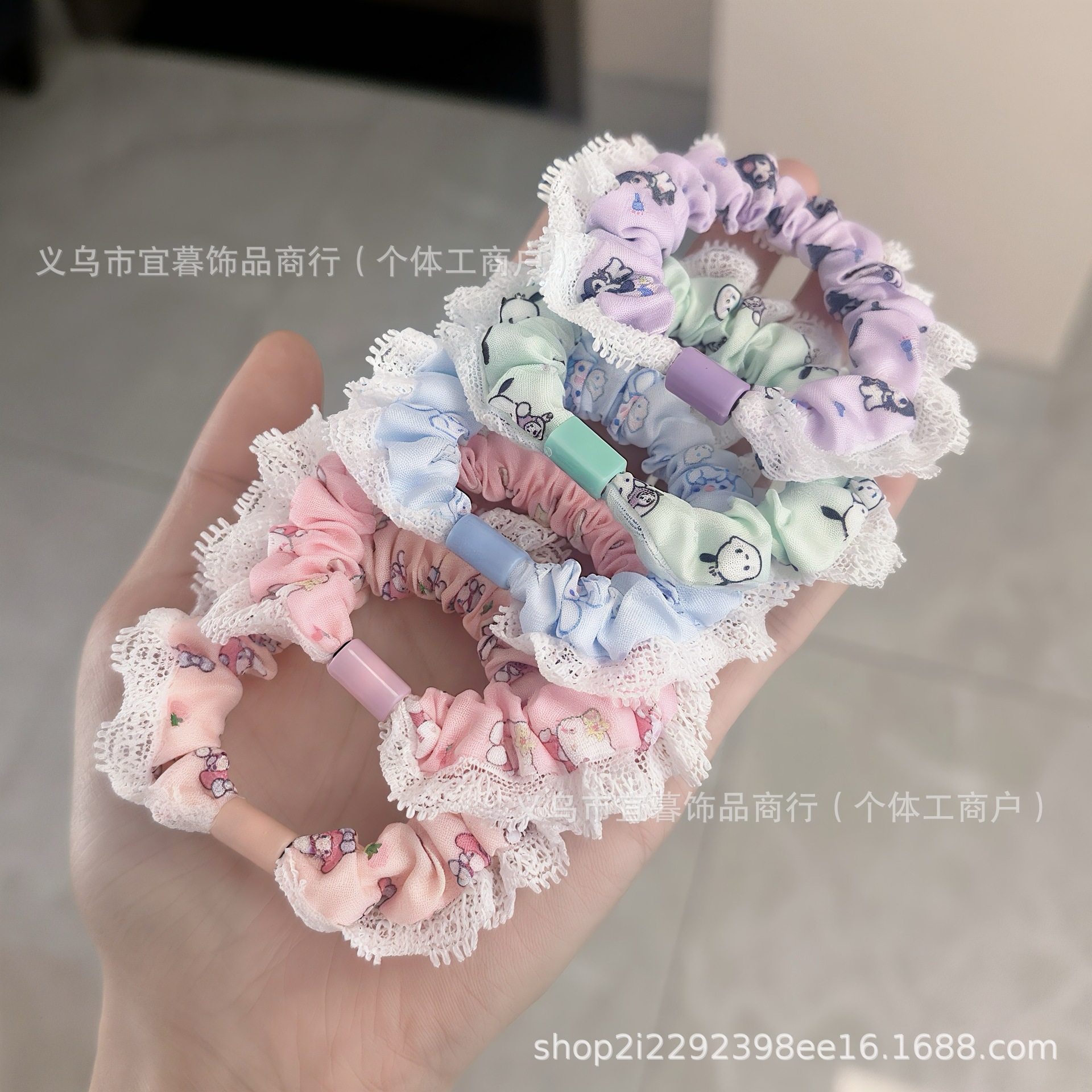 Sanrio кружевной цветок, толстая кишка, уход за волосами, повязка для волос, милое мультяшное сердце для девочек, маленькое свежее кольцо для толстой кишки, высокая эластичность