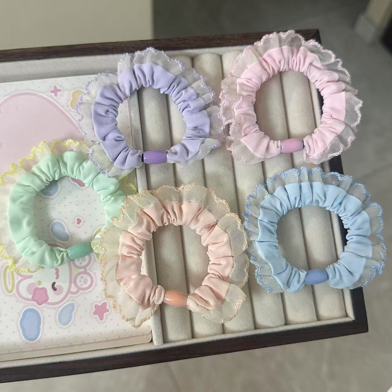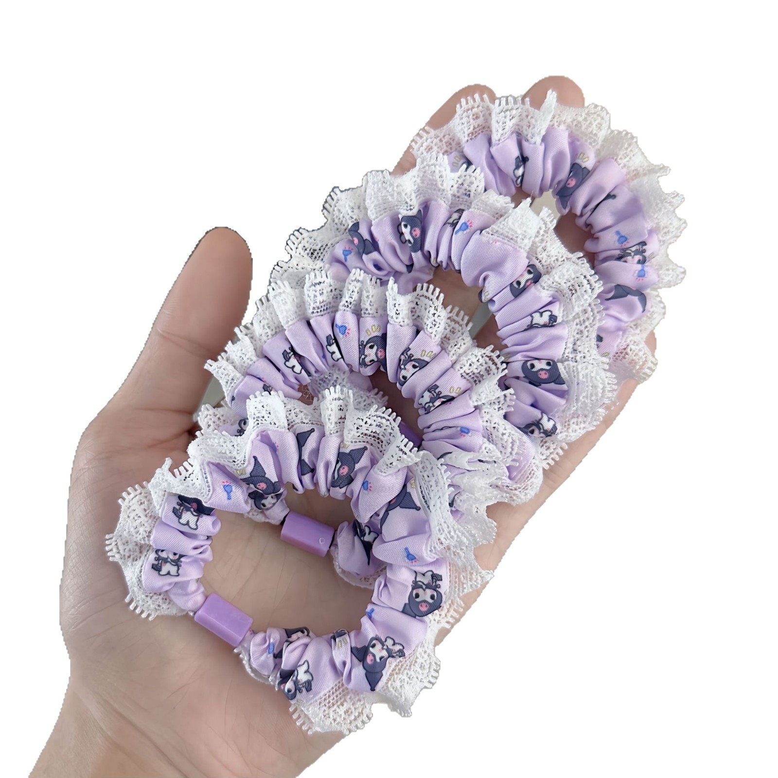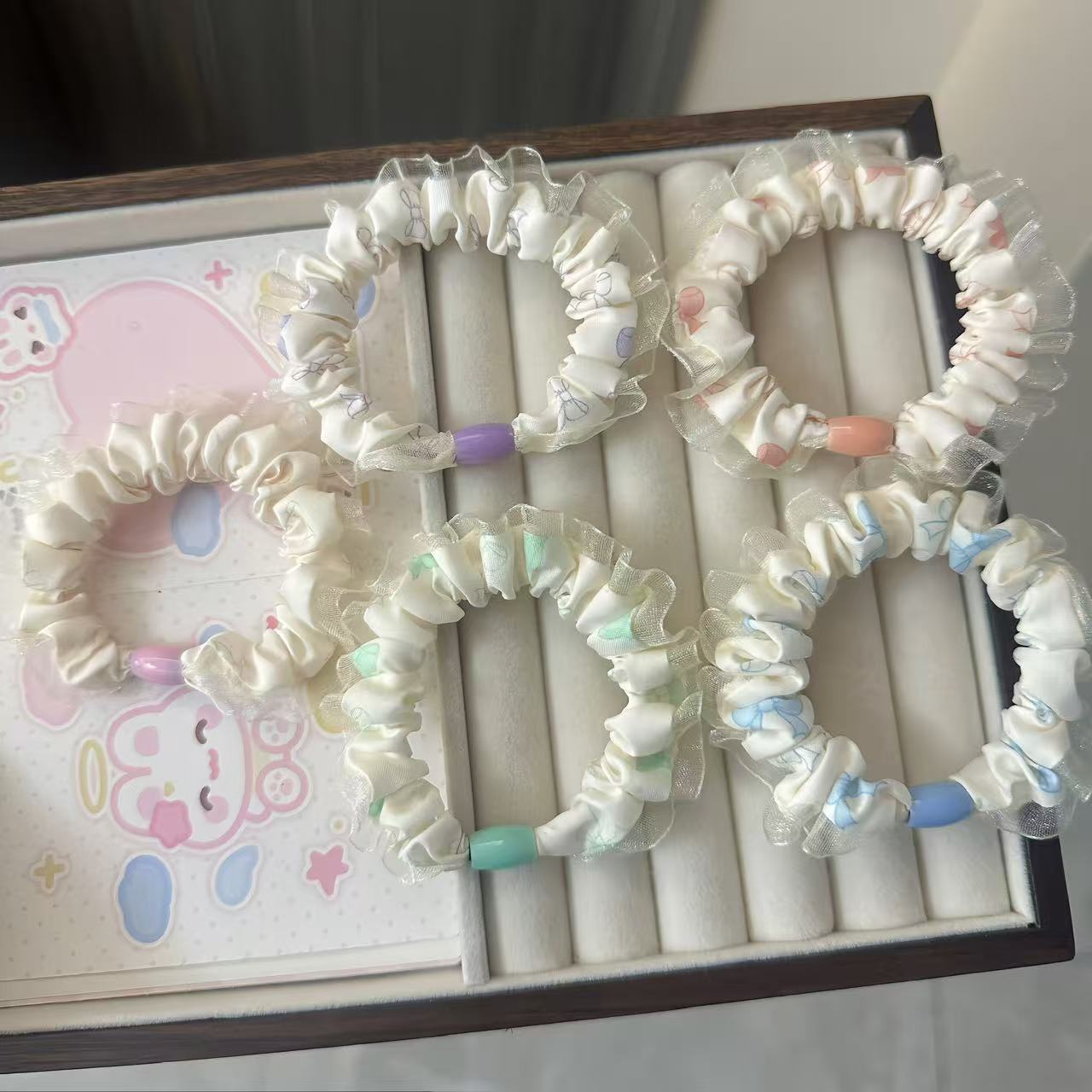 Sanrio кружевной цветок, толстая кишка, уход за волосами, повязка для волос, милое мультяшное сердце для девочек, маленькое свежее кольцо для толстой кишки, высокая эластичность