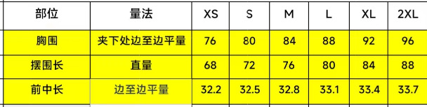 XS; S; M; L; XL; XXL
