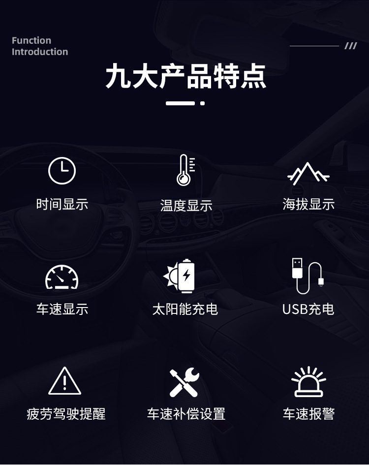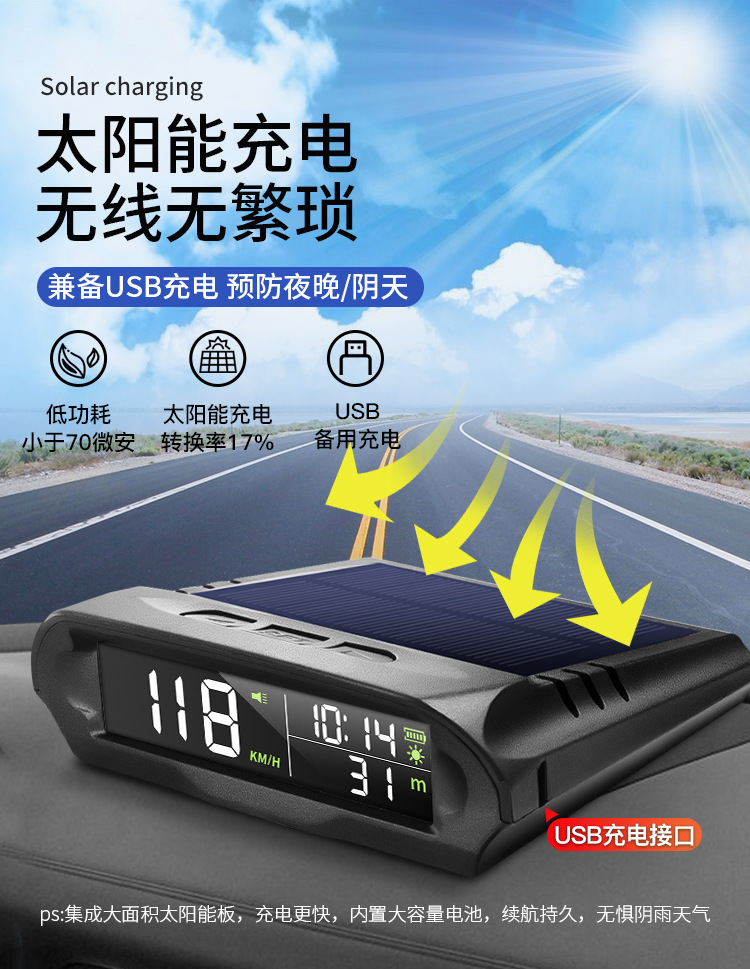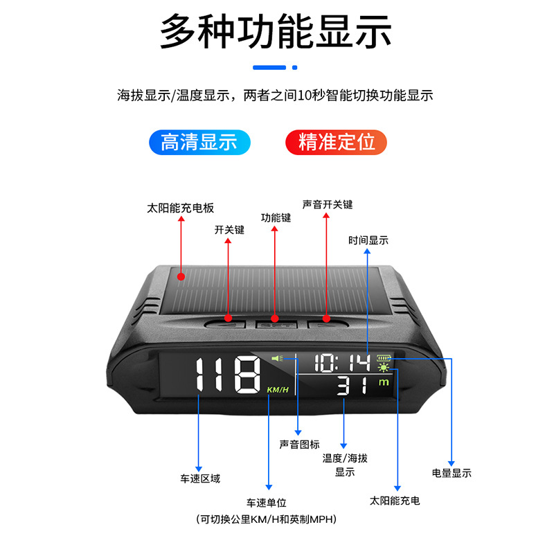 Универсальный проекционный дисплей HUD для автомобиля, солнечный, беспроводной, GPS, с функциями измерения скорости, высоты, часов и GPS-позиционирования