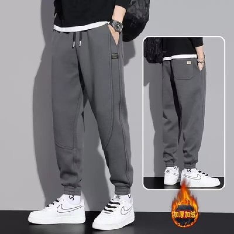 Модные мужские теплые спортивные штаны на флисовой подкладке осени и зимы 2024 года, однотонные свободные спортивные брюки для бега с завязками, длинные брюки на весну.