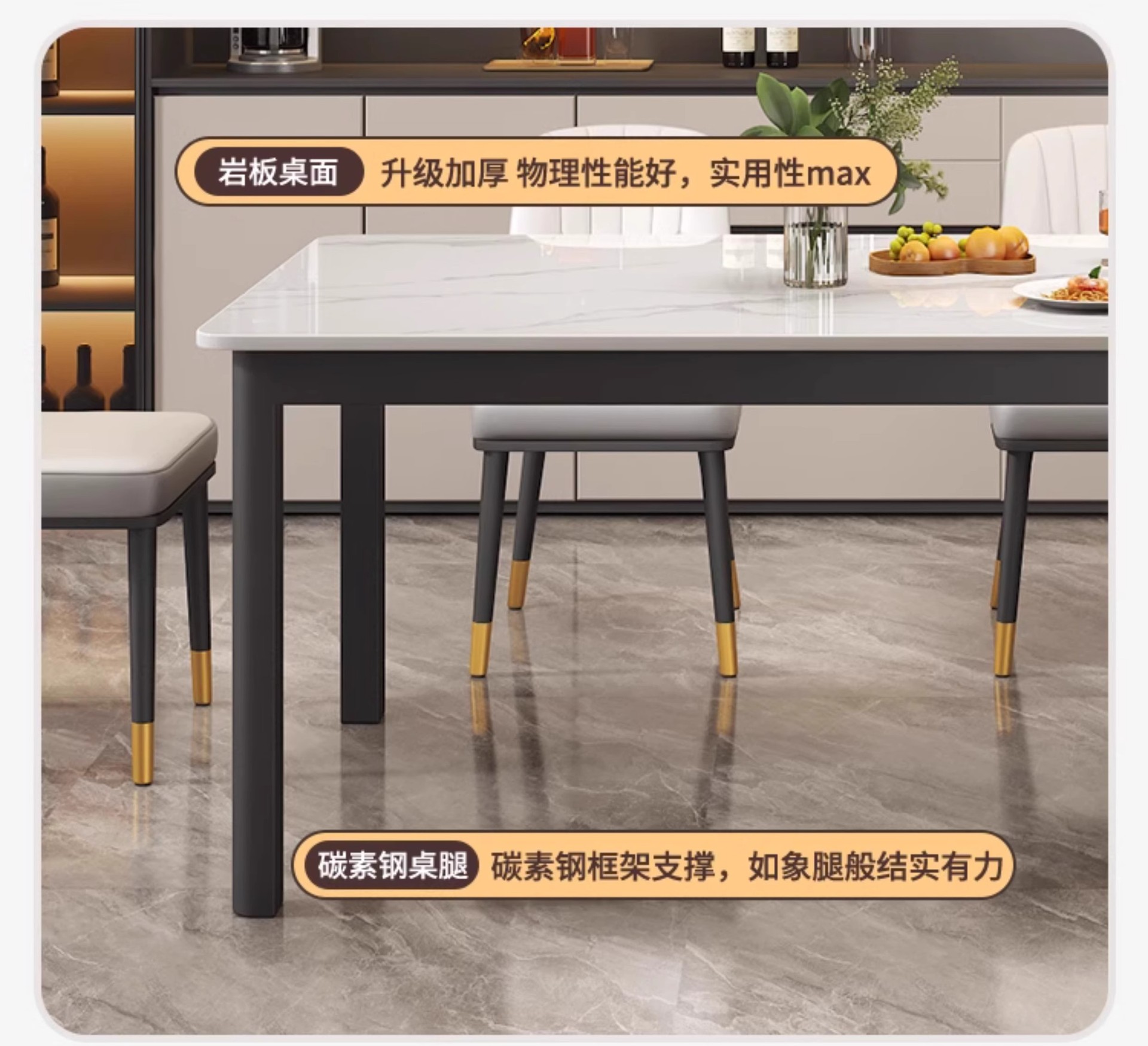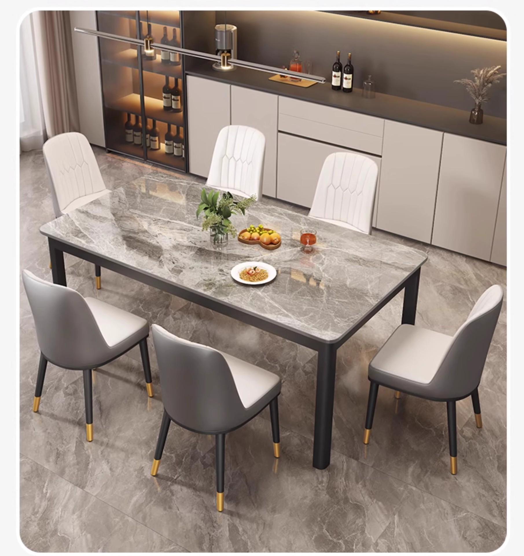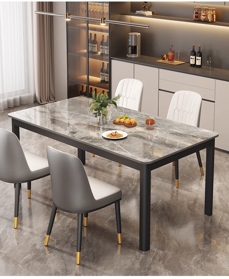 Сланцевый светлый роскошный современный простой домашний стол для небольшой квартиры, прямоугольный ресторанный обеденный стол, обеденный стол и стулья из сланца, индивидуальный заказ