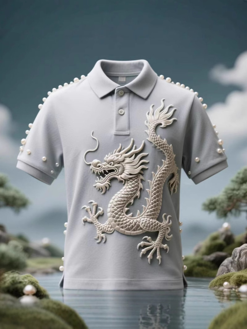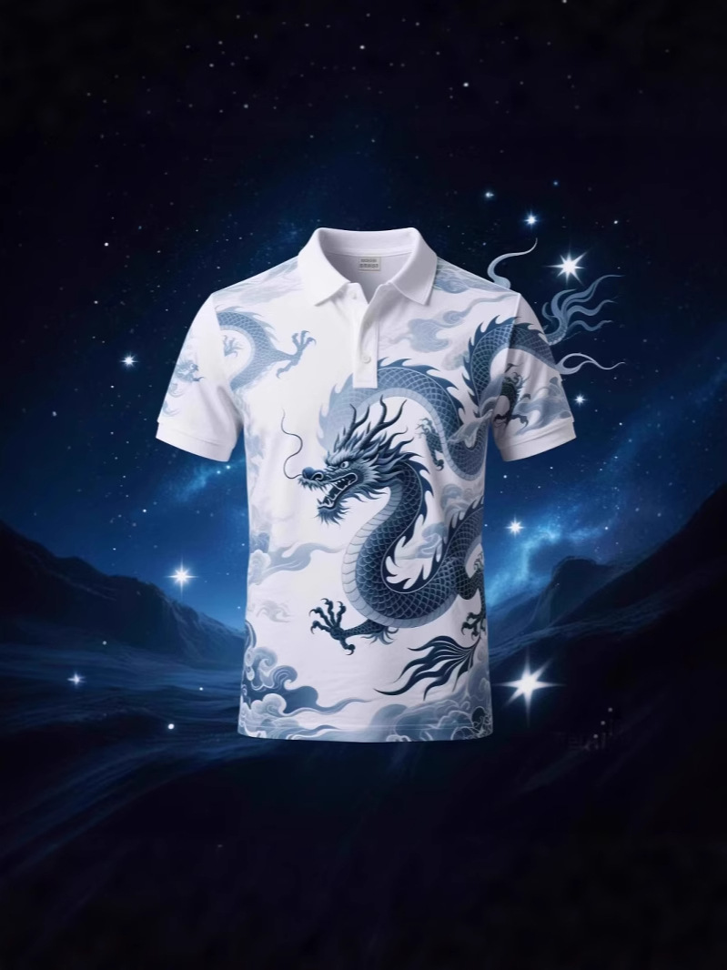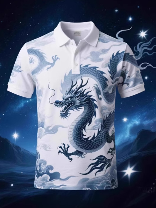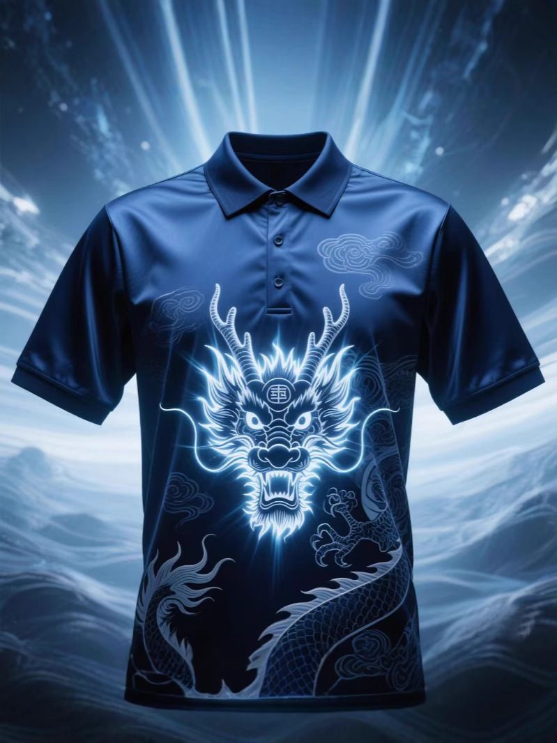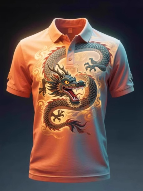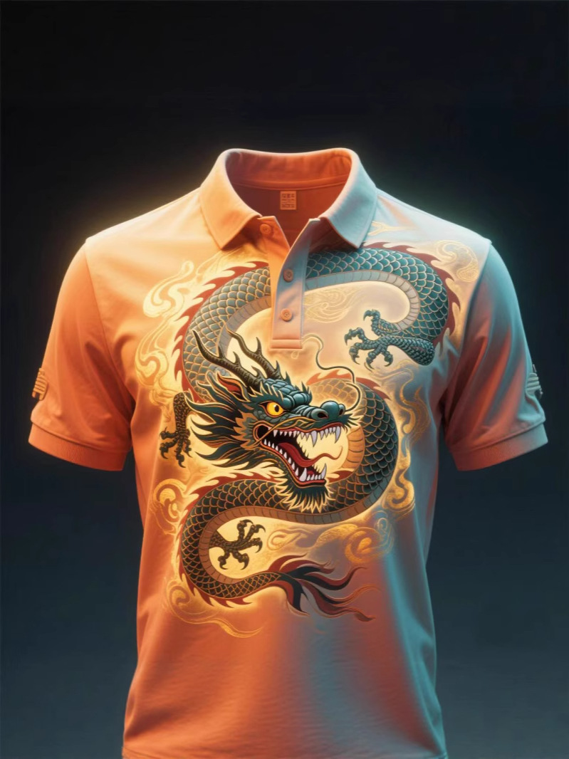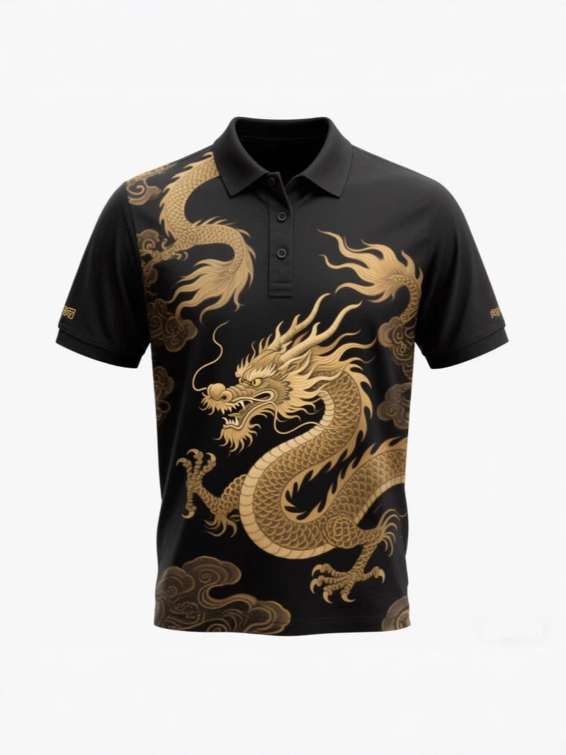 Цифровая рубашка-поло с принтом всего тела, изготовленная по индивидуальному заказу с культурными элементами дракона, с короткими рукавами, 3D-классная рекламная форма для мероприятий, ищет заводскую обработку