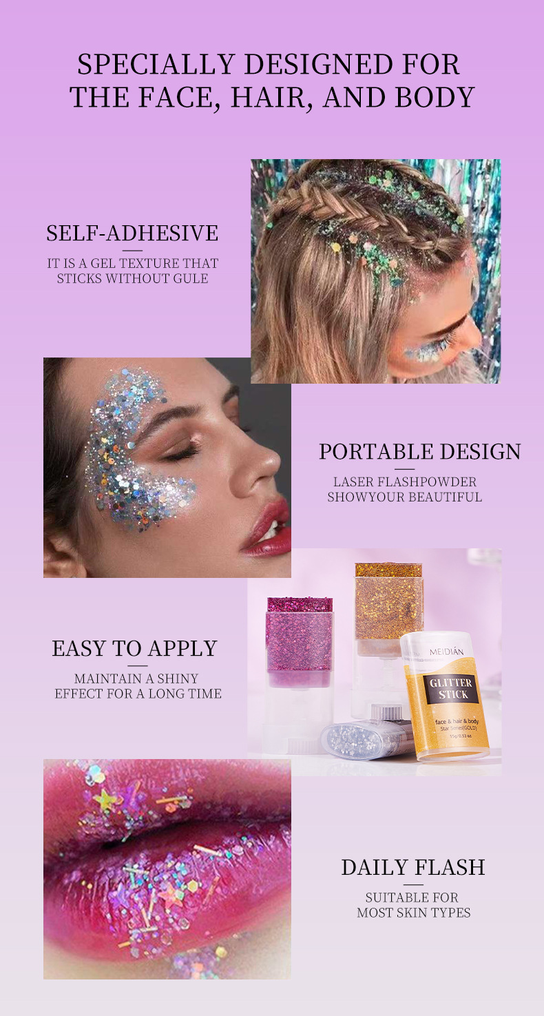 Эксклюзивный хайлайтер-стик с блестками для вечеринок, выступлений, макияжа лица, тела и ключиц.