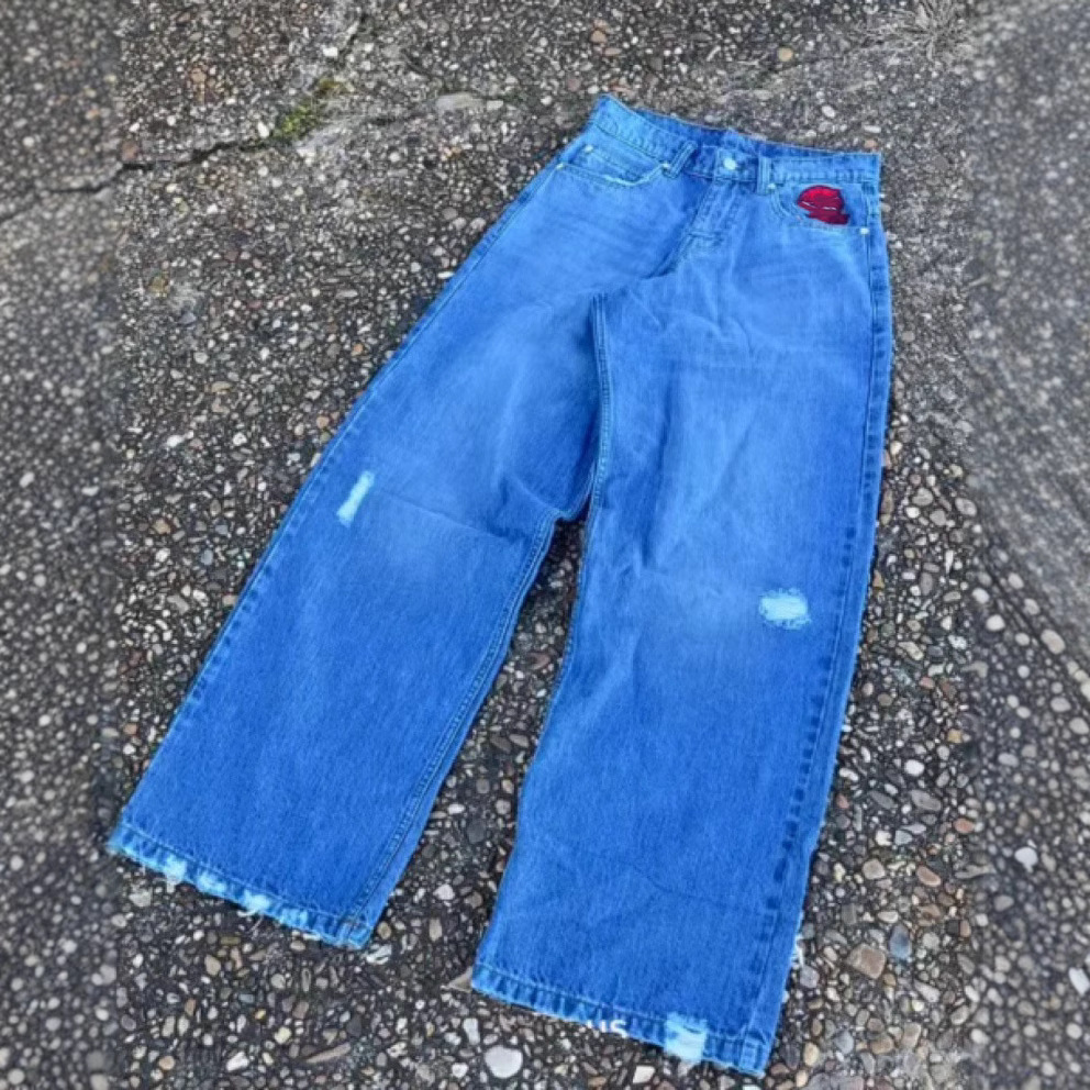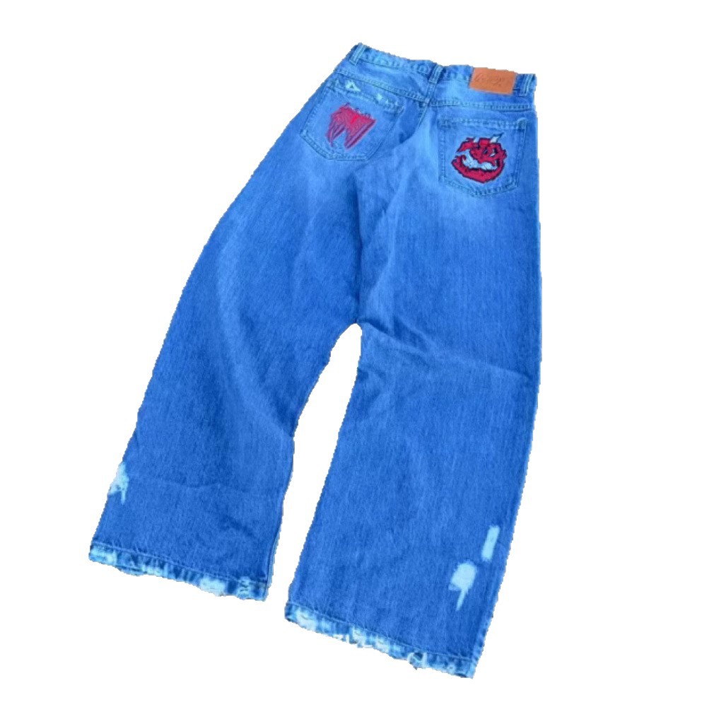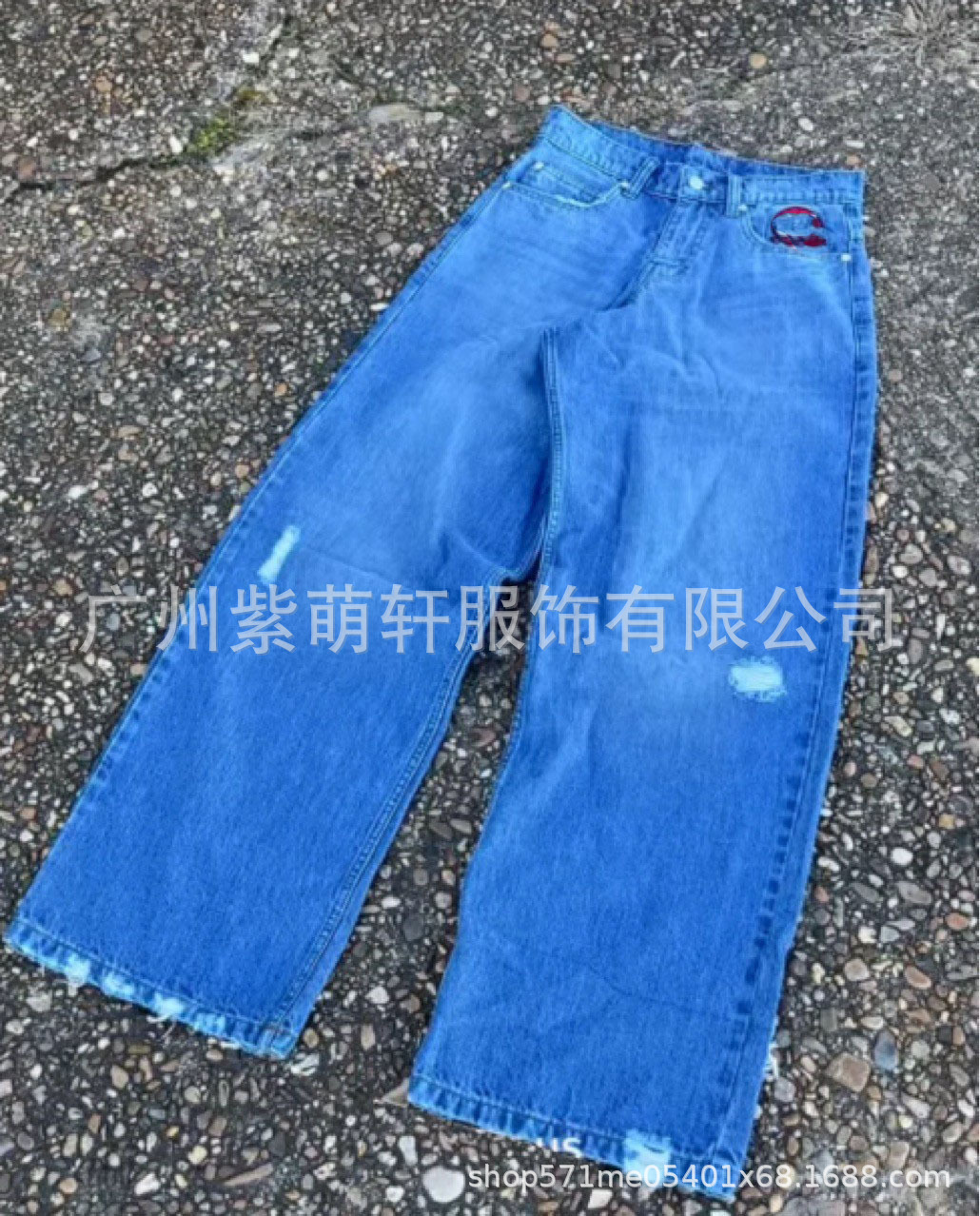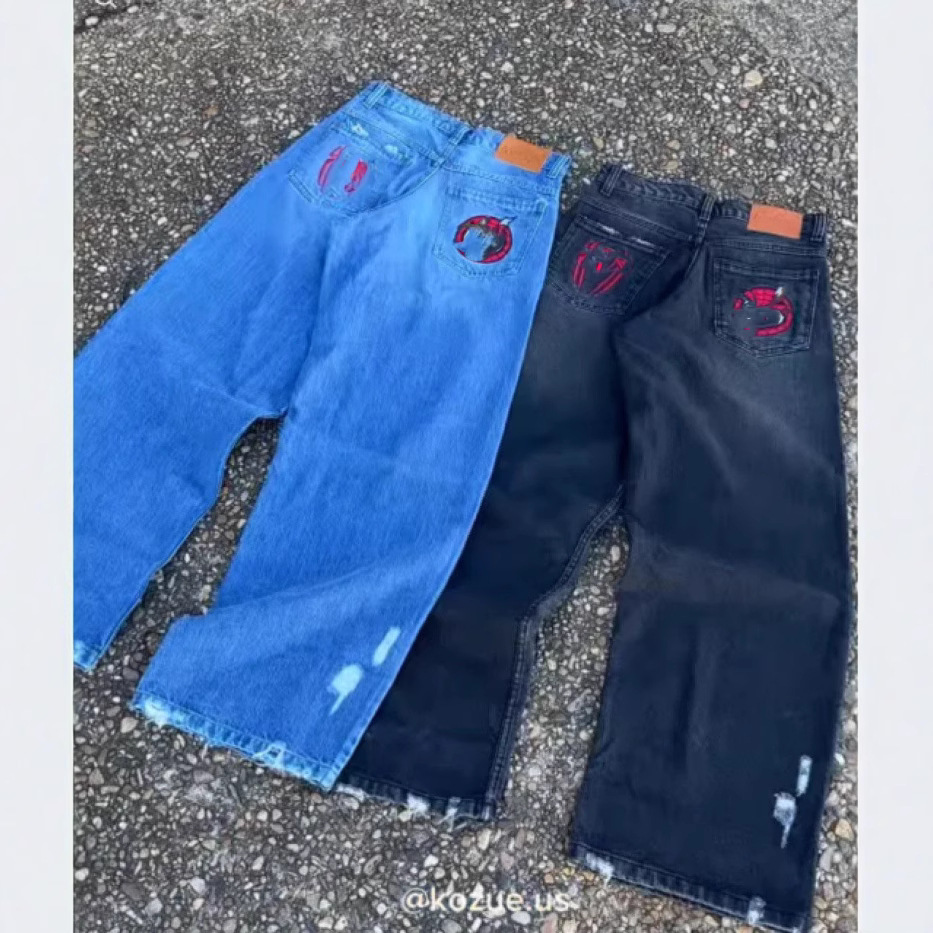 2025 уличный стиль модные хип-хоп мультяшные пауки вышивка свободные скейтборд свободные ретро брюки джинсы