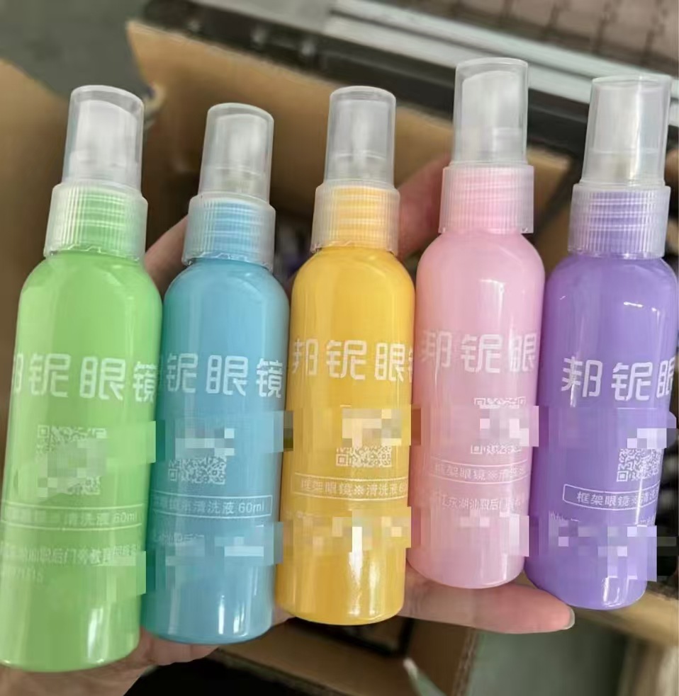 Оптовая продажа 60 мл цветная бутылка для очков Очиститель очков Очиститель очков Очиститель экрана Уход можно напечатать LOGO