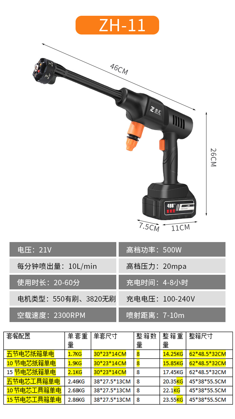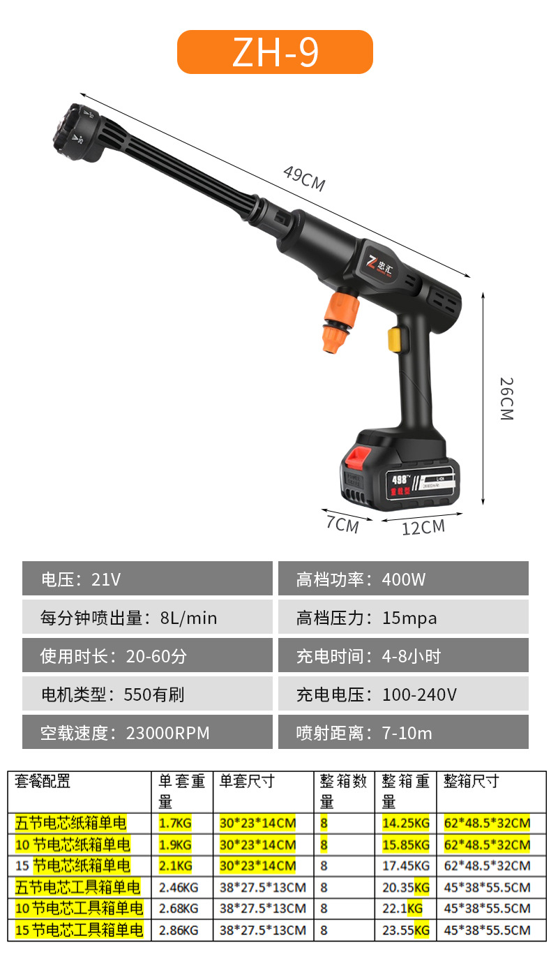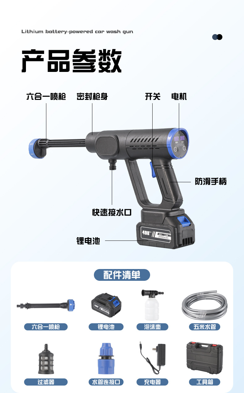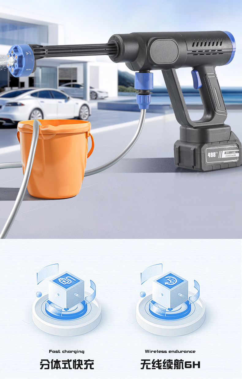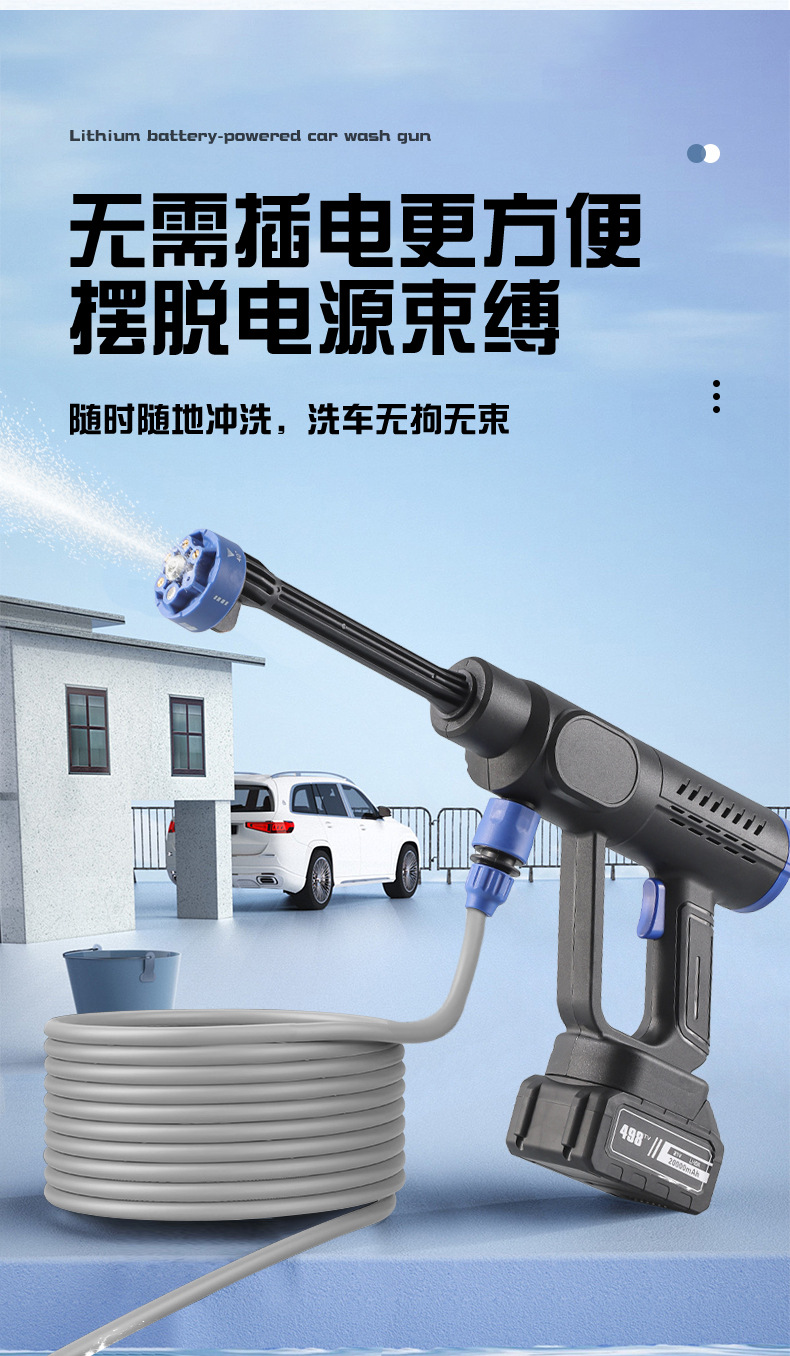 Беспроводной аккумуляторный водоструйный пистолет высокого давления для мойки автомобилей, бытовой, оптом