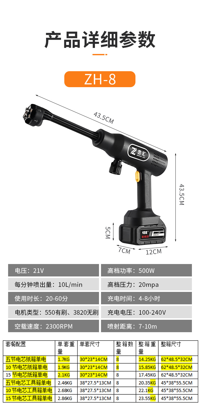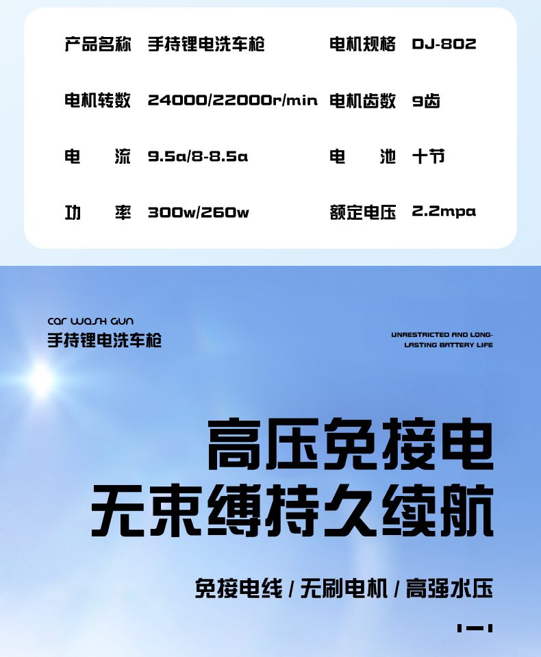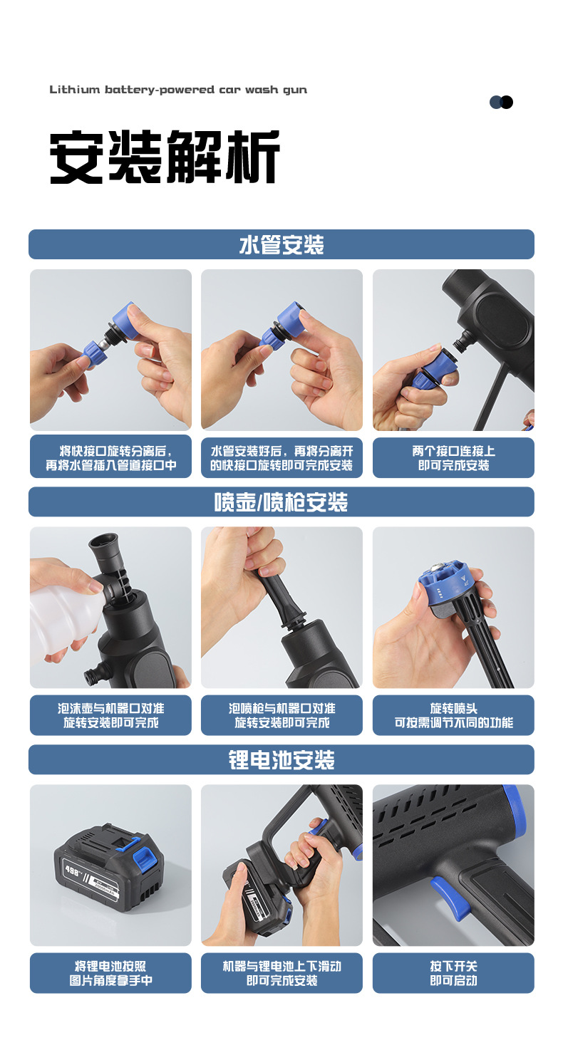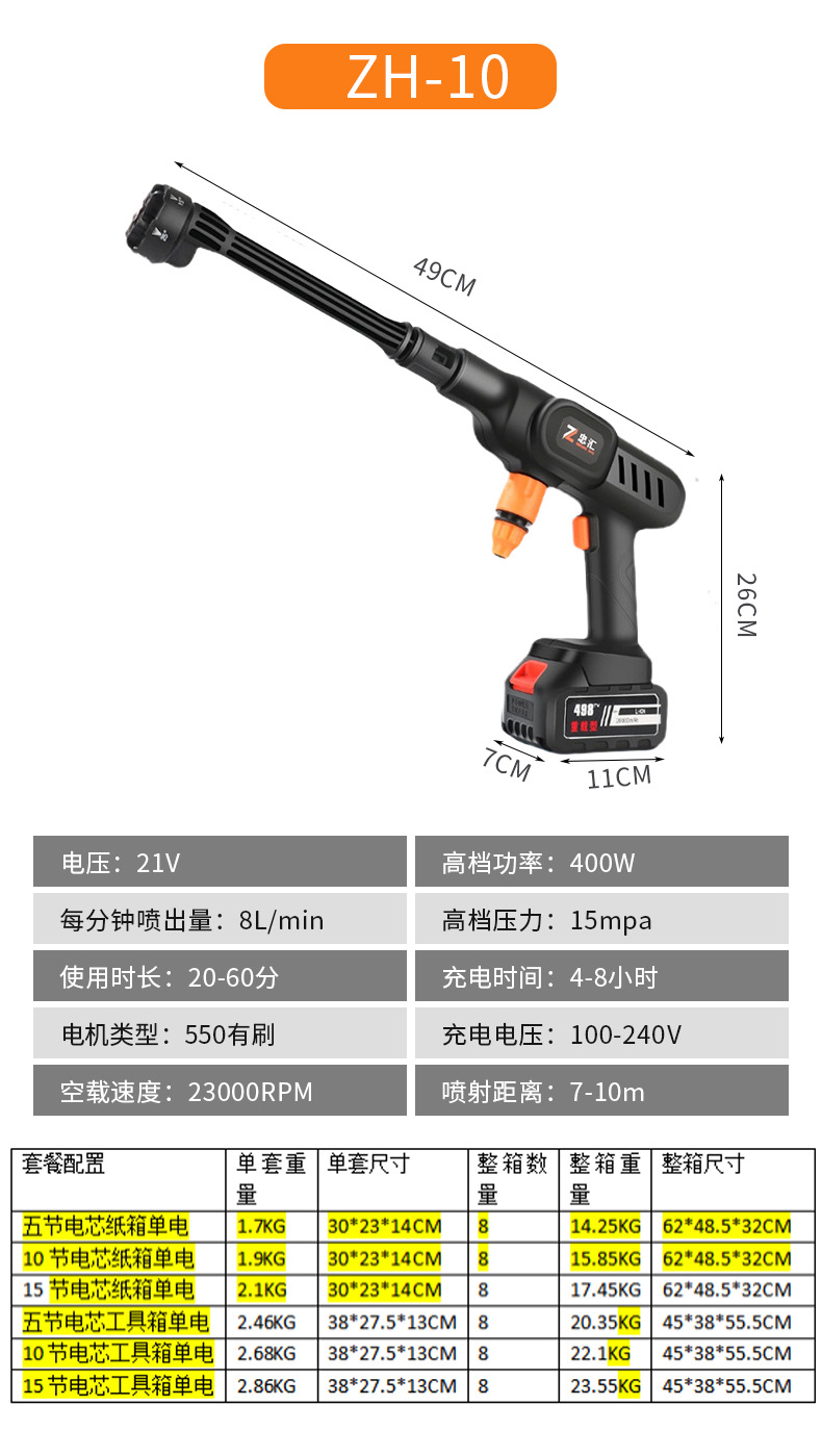 Беспроводной аккумуляторный водоструйный пистолет высокого давления для мойки автомобилей, бытовой, оптом