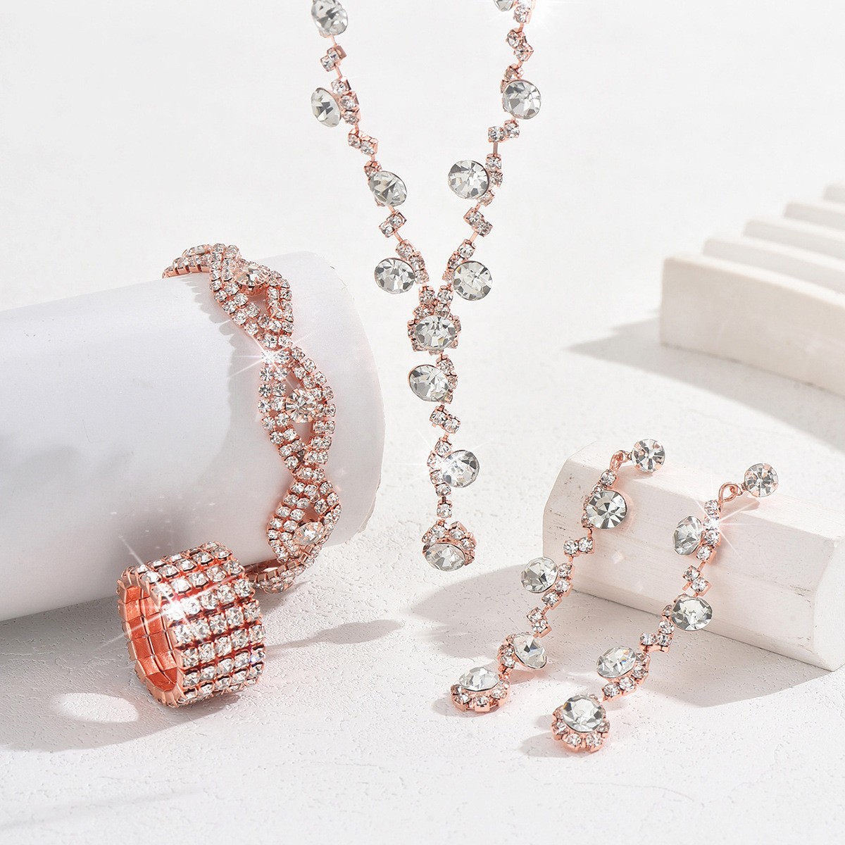 Европейский и американский трансграничный комплект украшений с кристаллами и стразами, модный темперамент, инкрустированный бриллиантами, женские свадебные украшения