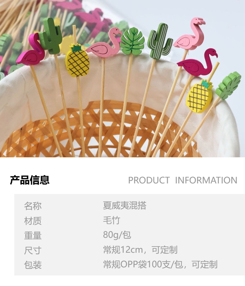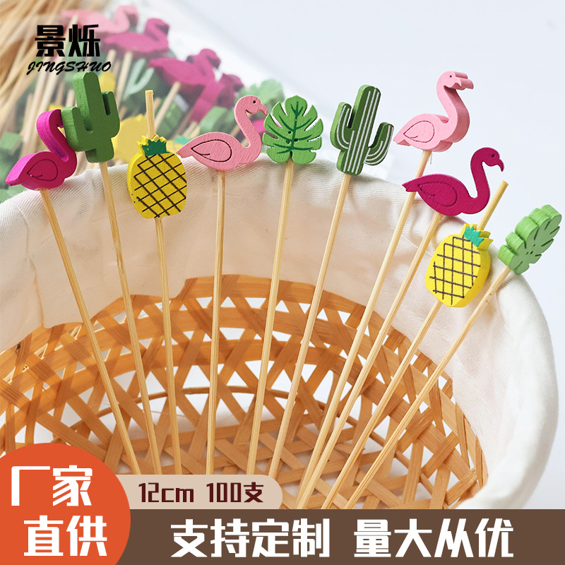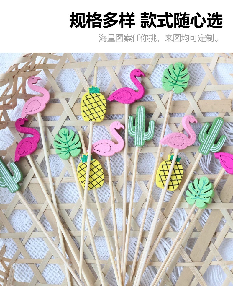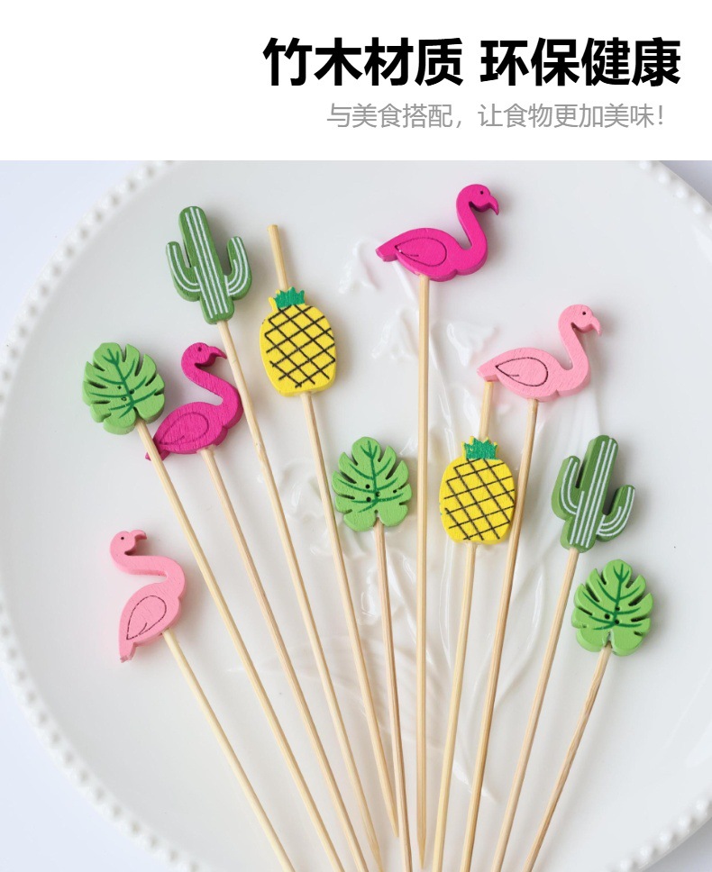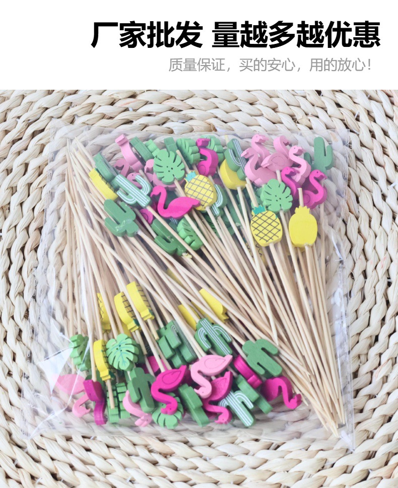 Летние новые гавайские гамбургерные коктейльные палочки Одноразовые бамбуковые палочки для украшения зубочистки мультипликационные узоры
