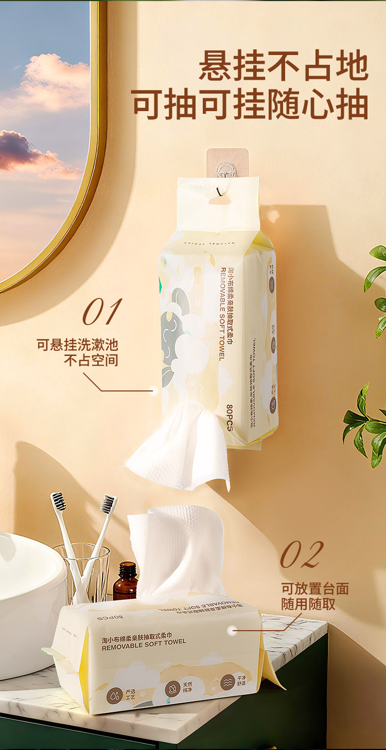 Полотенца для лица Taobao Xiaobu, 100% хлопок, мягкие полотенца для домашнего использования, подвесные, выдвижные, утолщенные, одноразовые салфетки для лица, оптом.