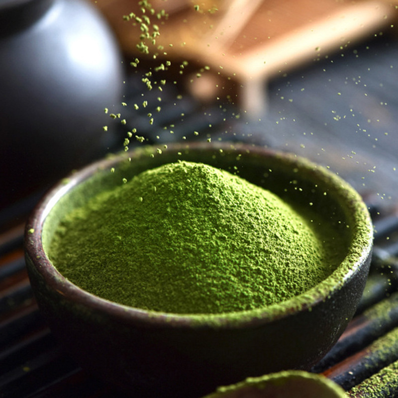 Зеленый порошок матча с высокой растворимостью в воде, идеально подходящий для использования в молочных чайных, для приготовления чайных напитков, тортов и выпечки, без сахара и полезный для здоровья.
