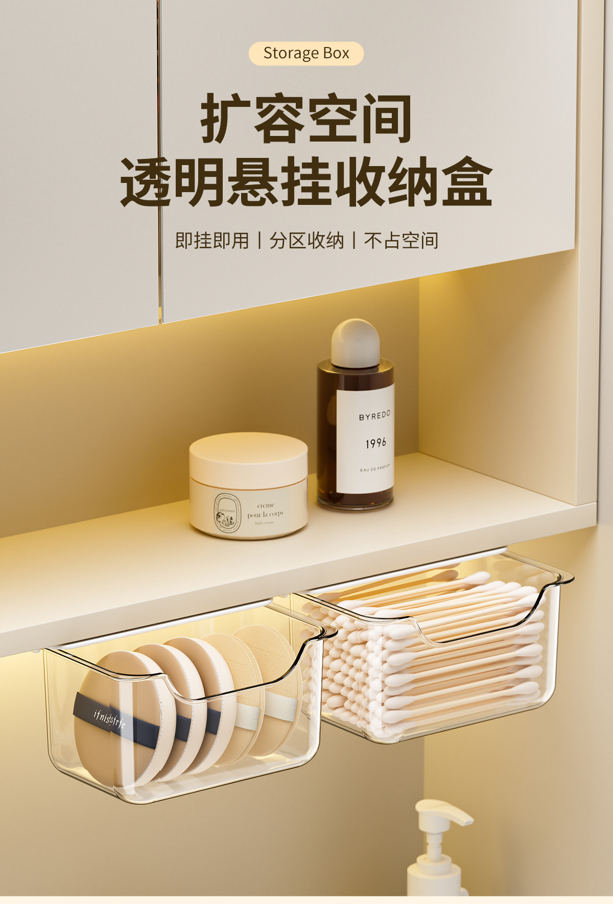 Ящик для хранения в ванной комнате, настенный ящик для хранения без перфорации, губная помада, косметика, зеркальный шкаф для хранения, прозрачный ящик для хранения ватных тампонов