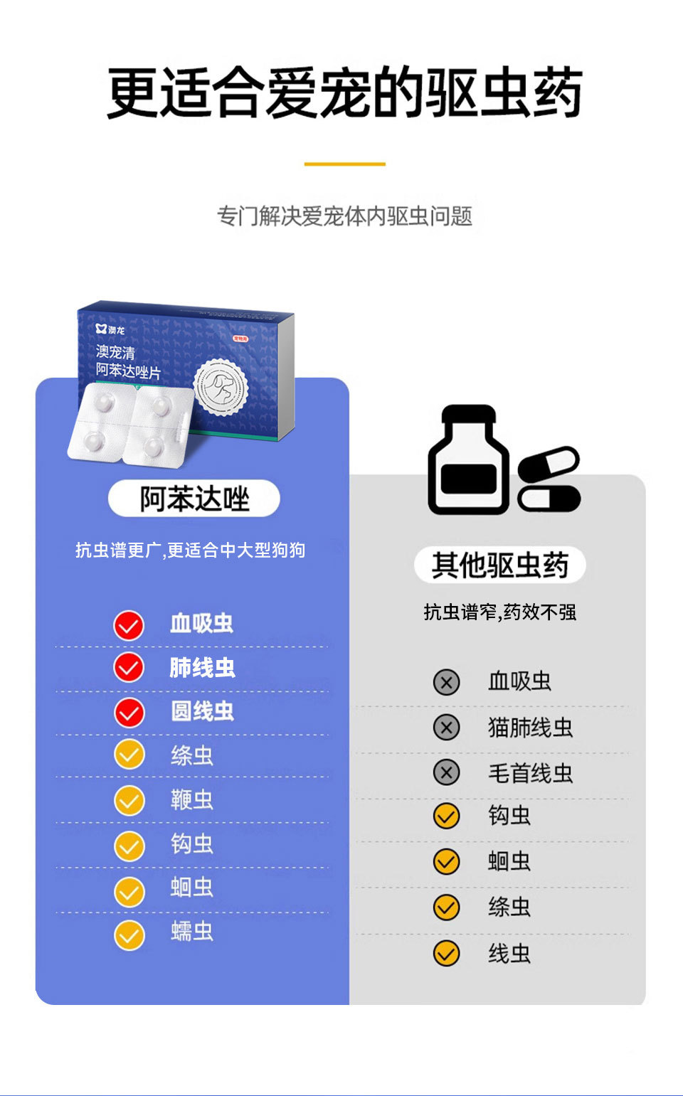 Антимикотик Aolong Aopetqing: таблетки для собак от внутренних паразитов, альбендазол, для щенков и кошек