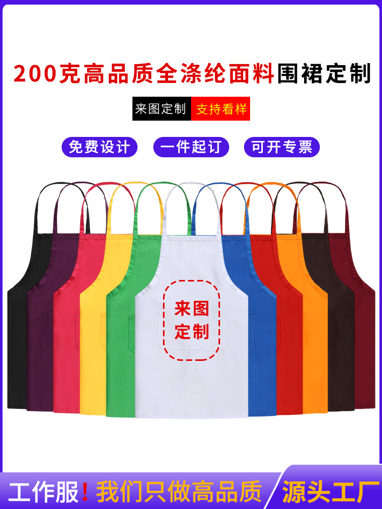 Фартук для ресторана с логотипом, магазин чая с молоком, твил, полиэстеровая ткань, модный бретель на шее, супермаркет, фруктовый магазин, печатный текст, оптовая продажа