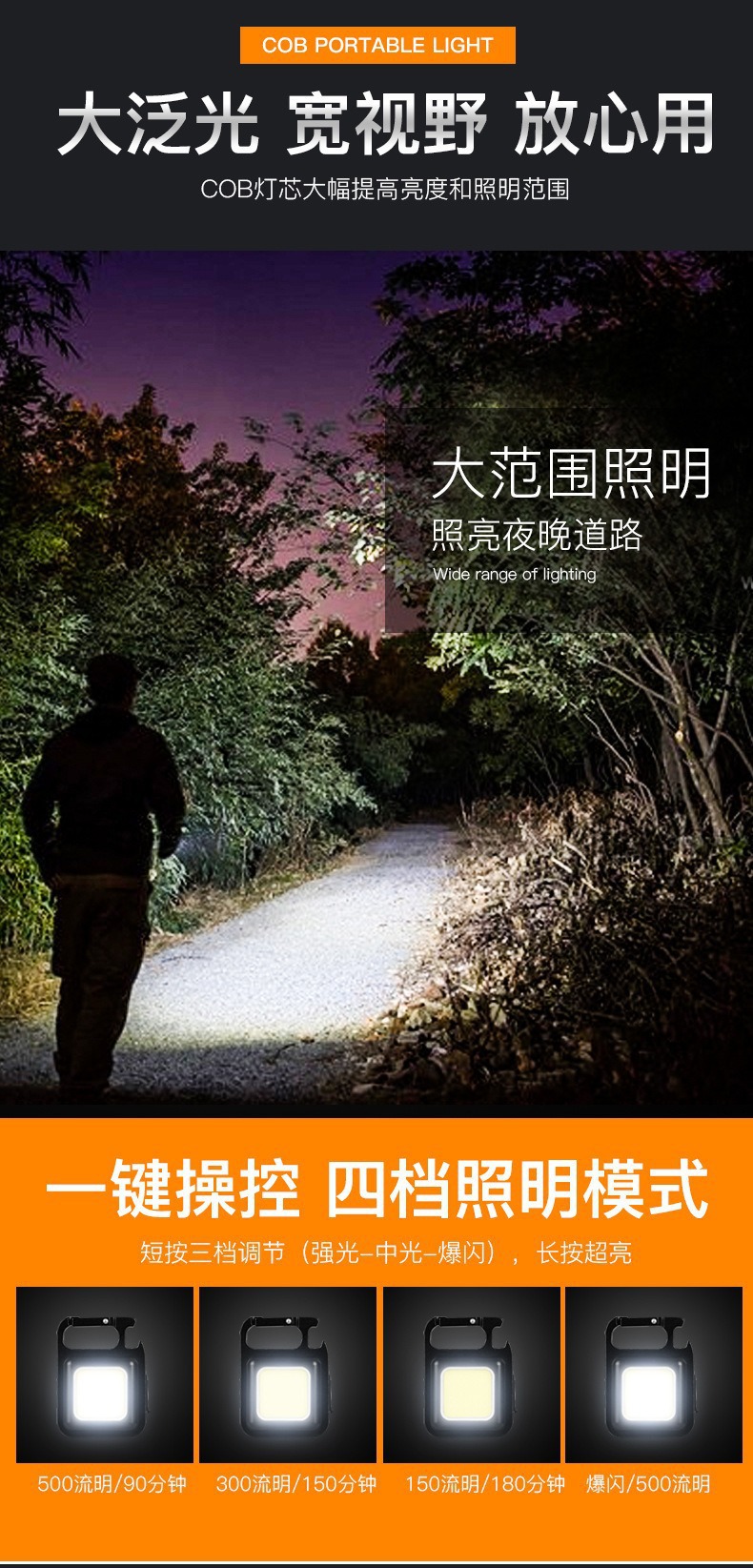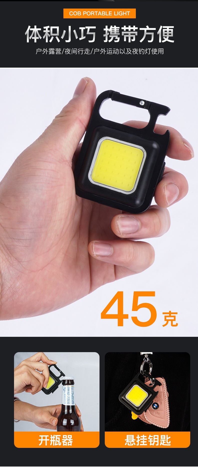 Трансграничный COB брелок светильник многофункциональный сильный свет портативный светильник магнитный фонарик мини-фонарик открытый свет usb зарядка