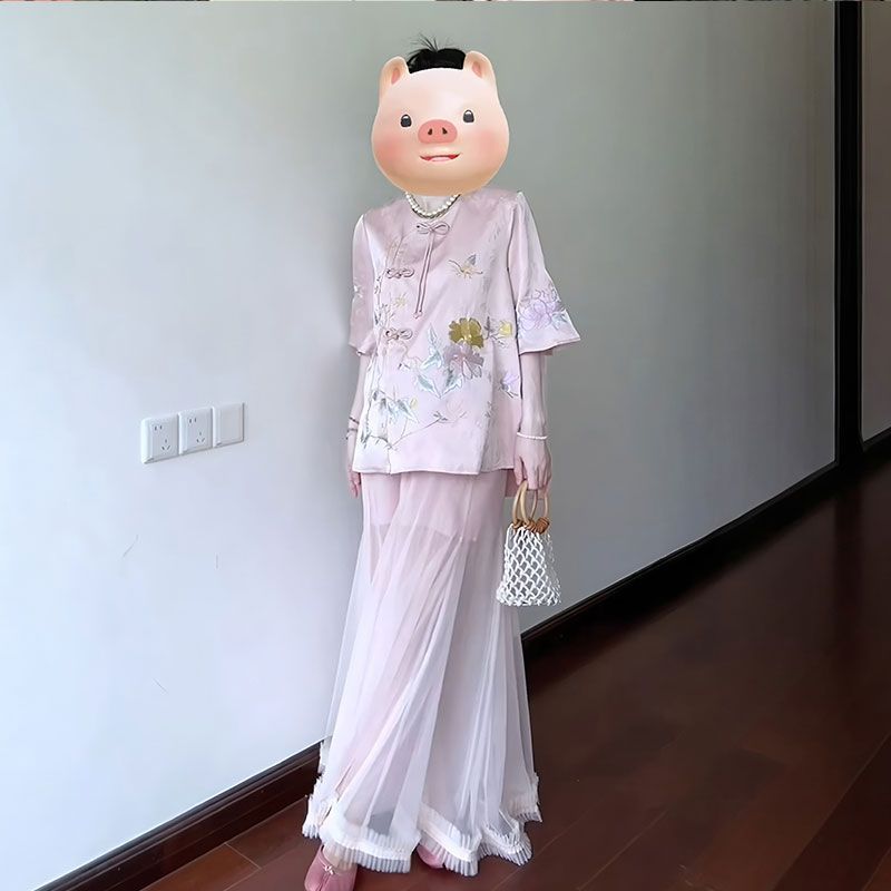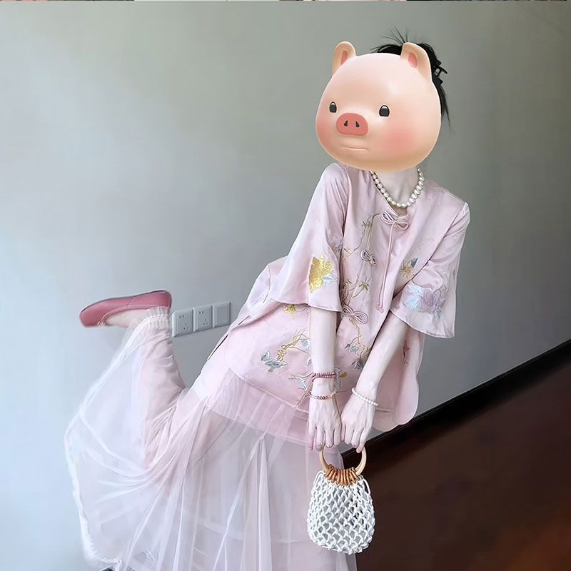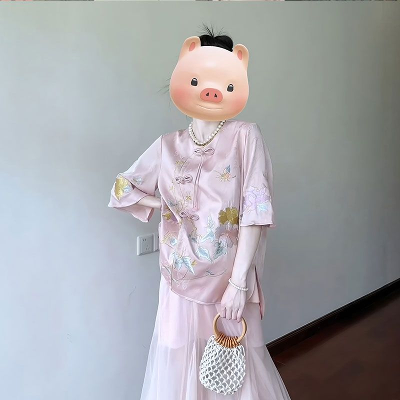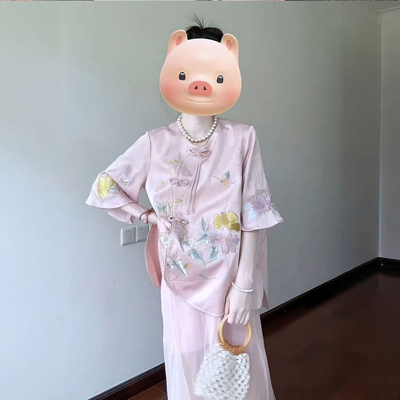 2025 лето новый улучшенный круглый воротник с дисковой пряжкой новый китайский стиль ретро национальный стиль элемент юбка бюст костюм