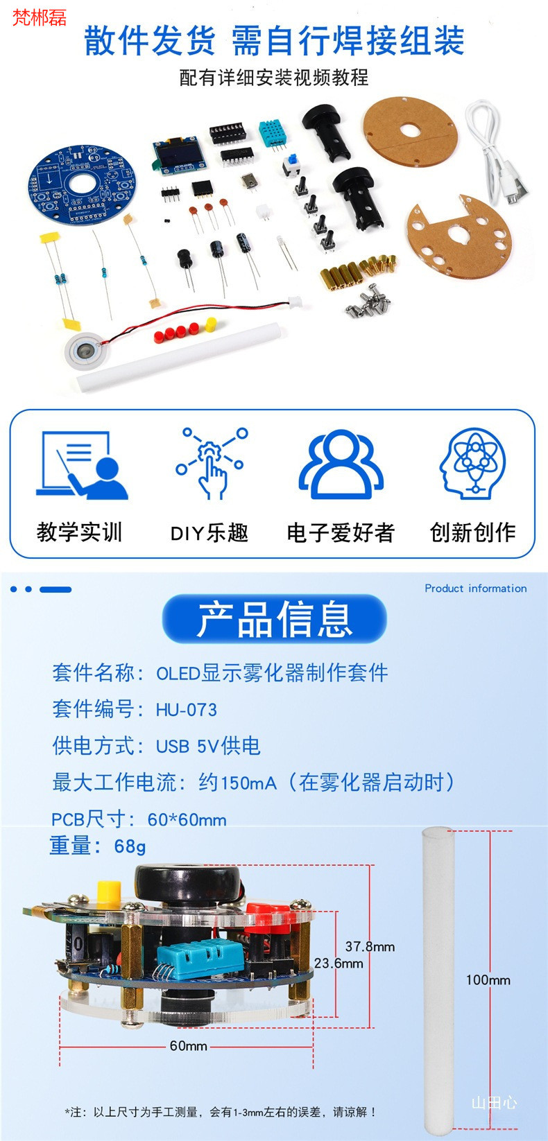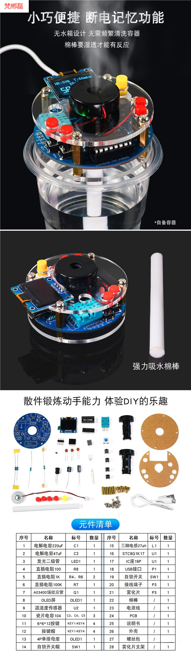 USB-увлажнитель, распылитель, цифровой комплект «сделай сам», спрей для увлажнения воздуха, печатная плата с таймером, детали для практики сварки