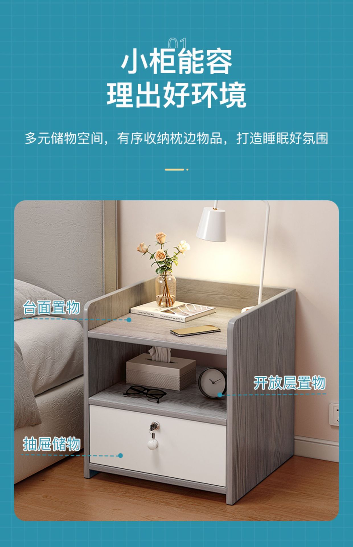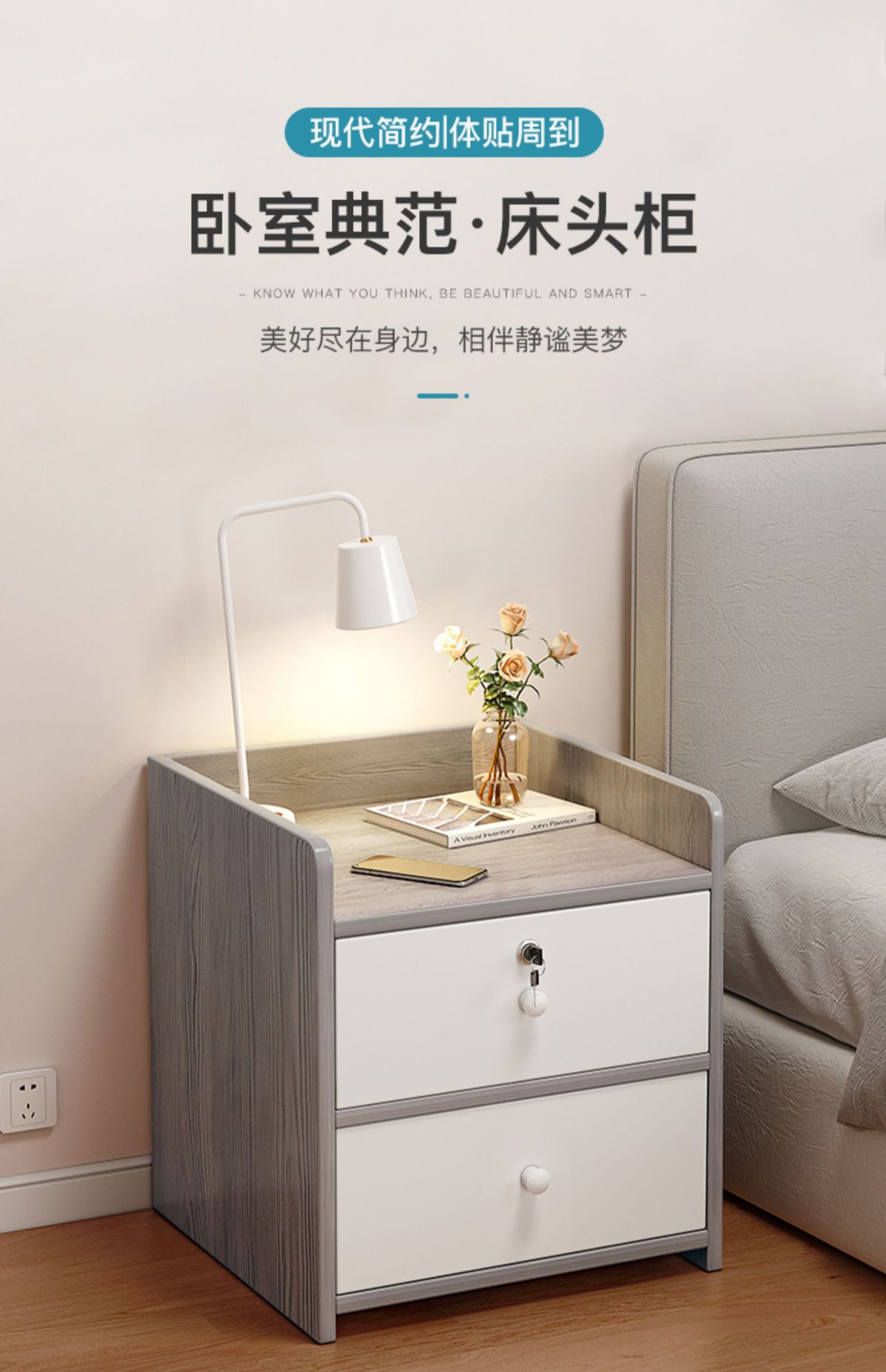 Маленькая прикроватная тумбочка, простой и современный шкаф для хранения вещей в домашней спальне, прикроватная тумбочка для арендованной комнаты, простая полка для хранения вещей.