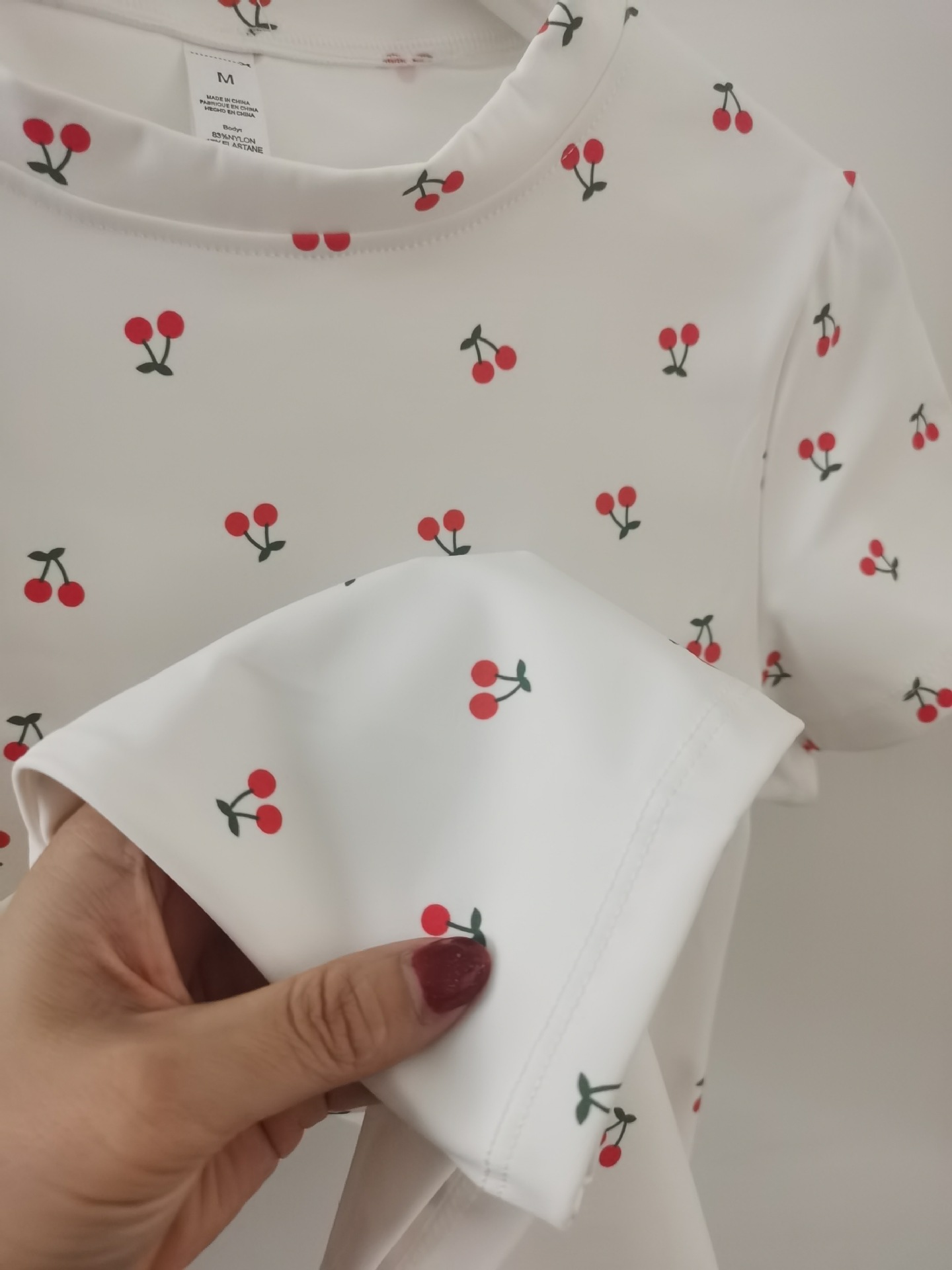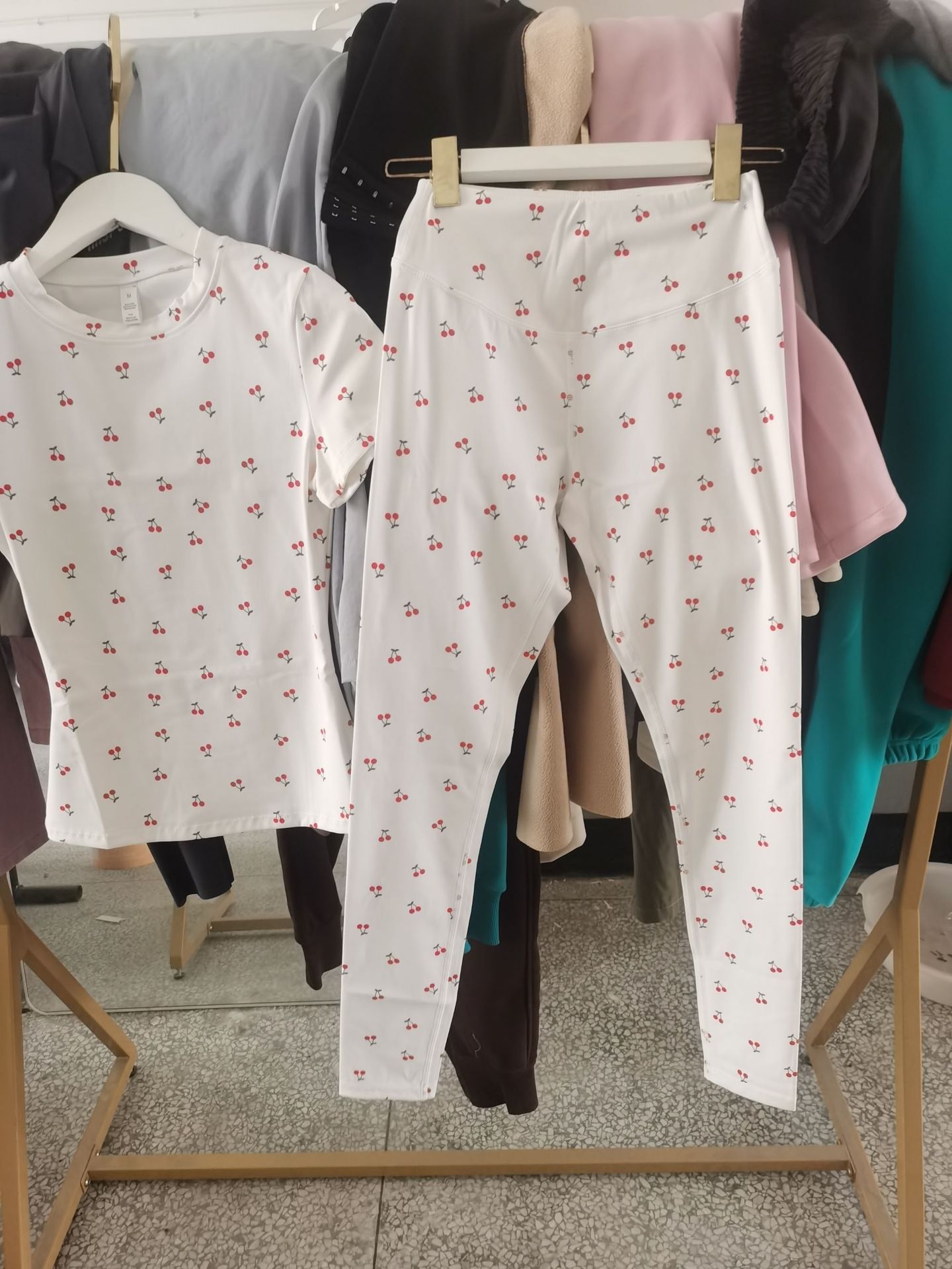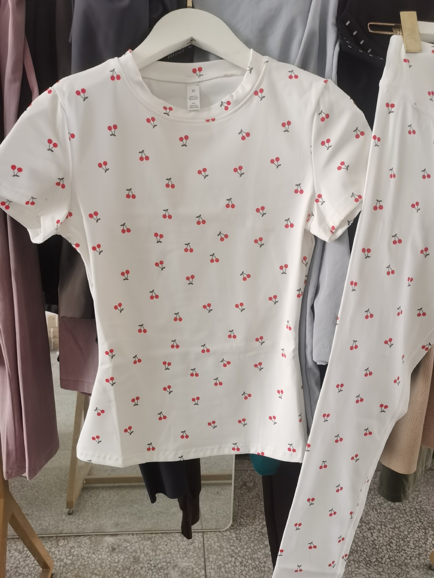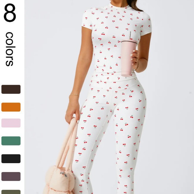 Комплект для йоги из матовой ткани: облегающий костюм для фитнеса и бега с высокой талией, принт «вишня», короткий рукав, модель 8455