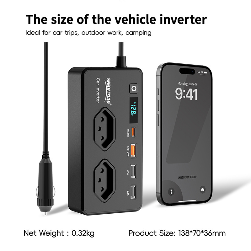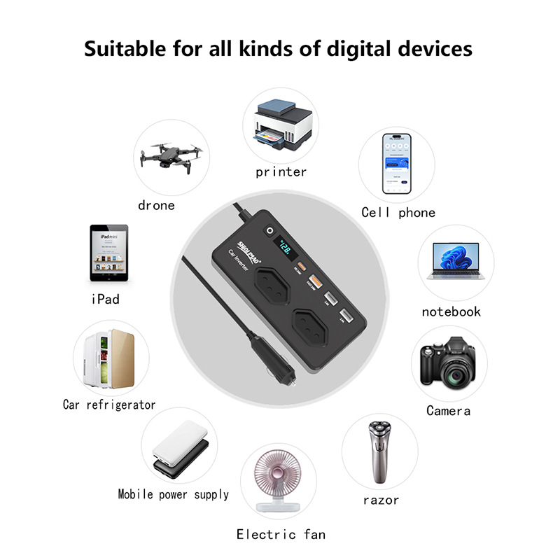 巴西爆款200W排插精选电源转换器多功能带数显快充逆变器车载专用