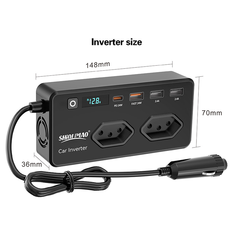 Популярный в Бразилии удлинитель мощностью 200 Вт, выбранный преобразователь мощности, многофункциональный с цифровым дисплеем, инвертор для быстрой зарядки, специально для автомобиля.