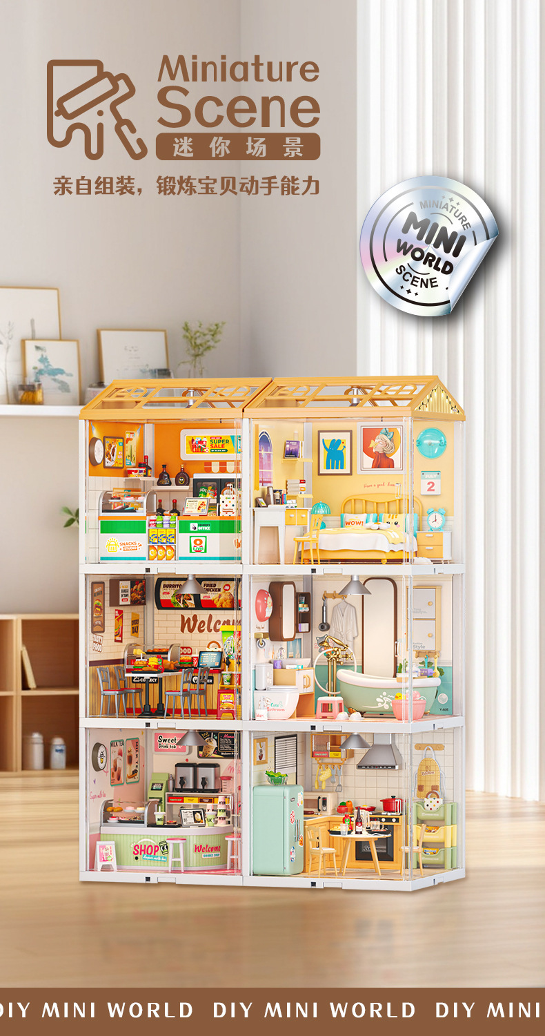 Развивающий конструктор Jiaerle «Городской пейзаж»: светящийся домик, игрушка для ролевых игр, строительные блоки
