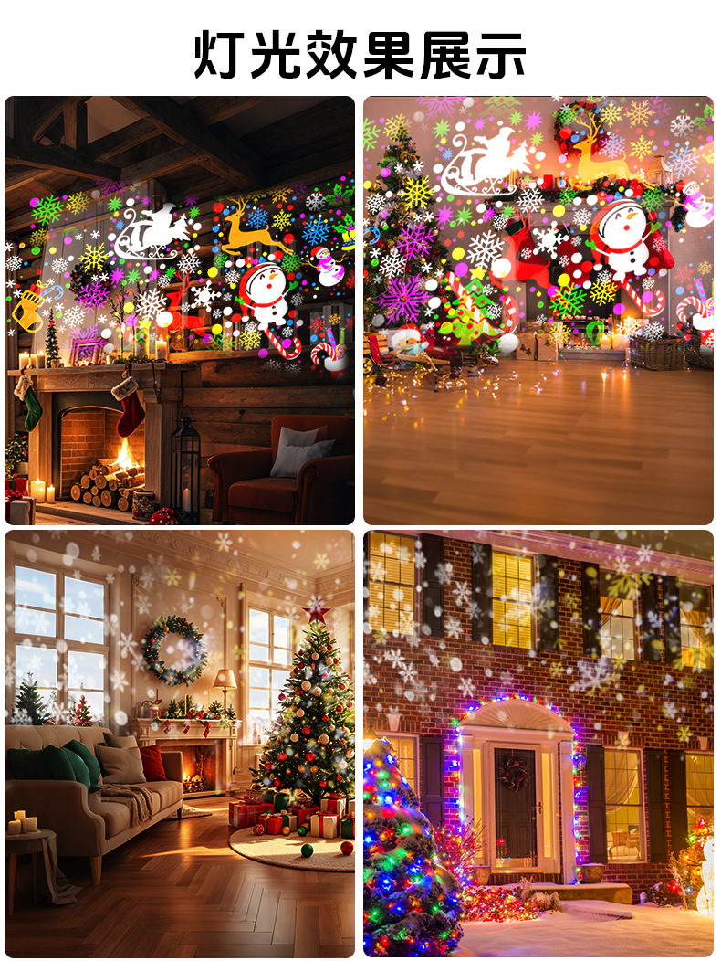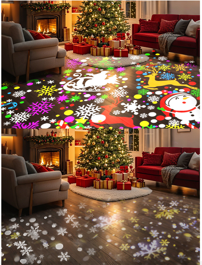 2025 Захватите новую проекционную снежинку-лампу на Рождество, 16 картинок, светодиодная атмосферная лампа, рождественские украшения, подарки