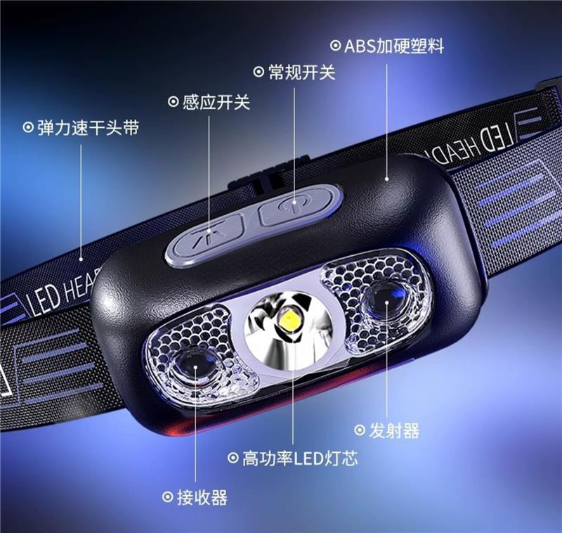 Налобный фонарь с сильным светом, ультраярким зарядным устройством, индукционной рыбалкой на открытом воздухе, ночной рыбалкой, освещением в стиле кемпинга, походов и альпинизма.