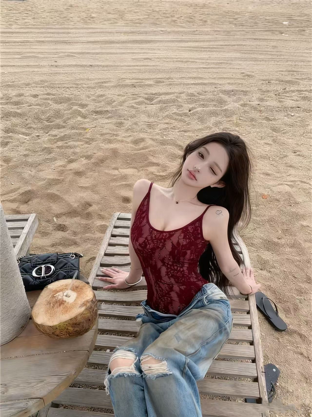 2256 Женский комбинезон в стиле "горячая девушка", облегающий, с кружевным внутренним дизайном, сексуальный топ с открытой спиной для верхнего слоя одежды