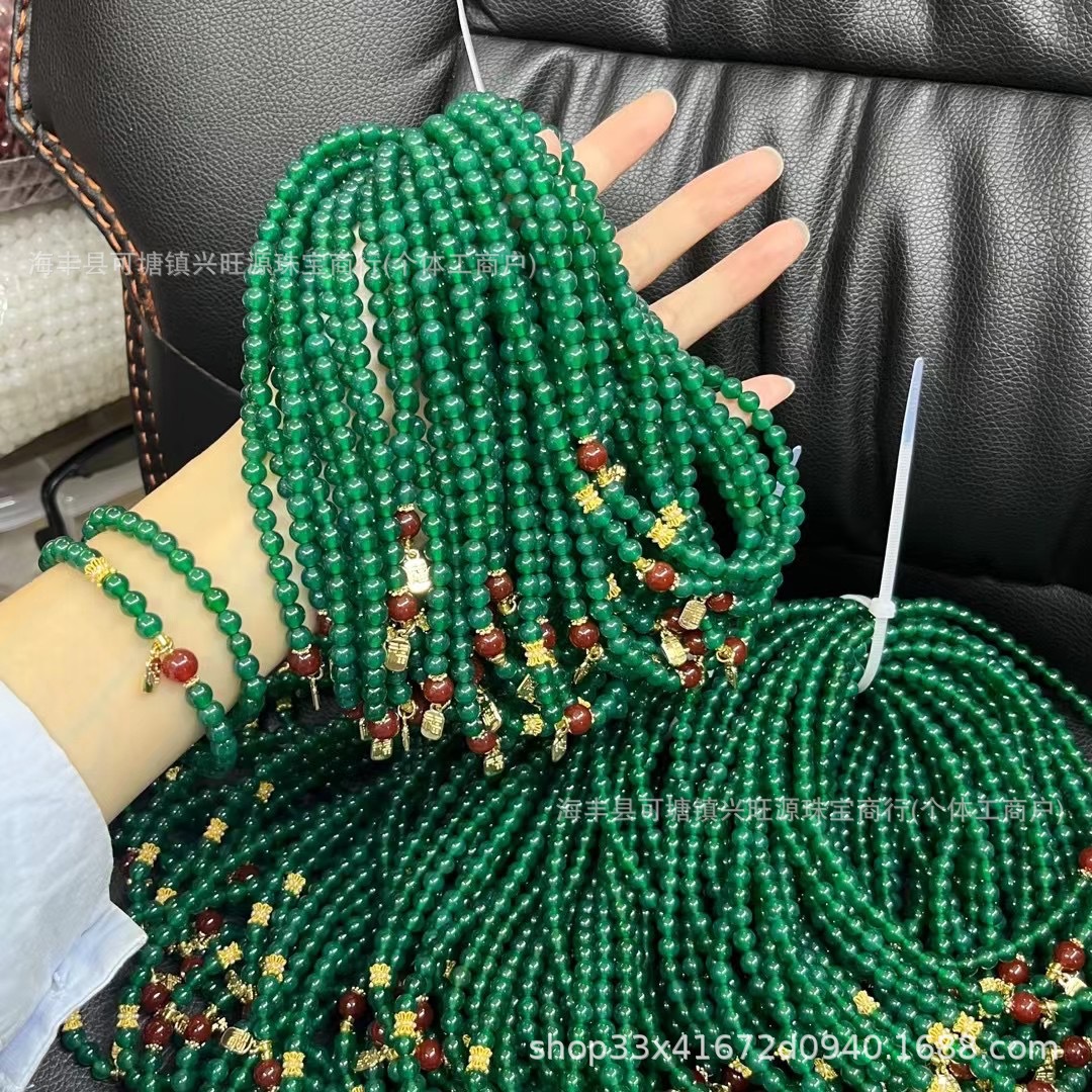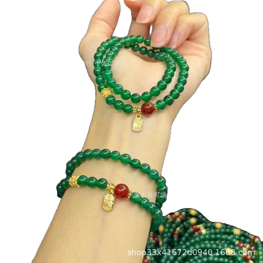天然绿玛瑙手串玉髓搭配红玛瑙福字吊坠女绿玛瑙手链多圈直播新款 批发量越大价格越低,可供直播间长期合作,欢迎来电私聊