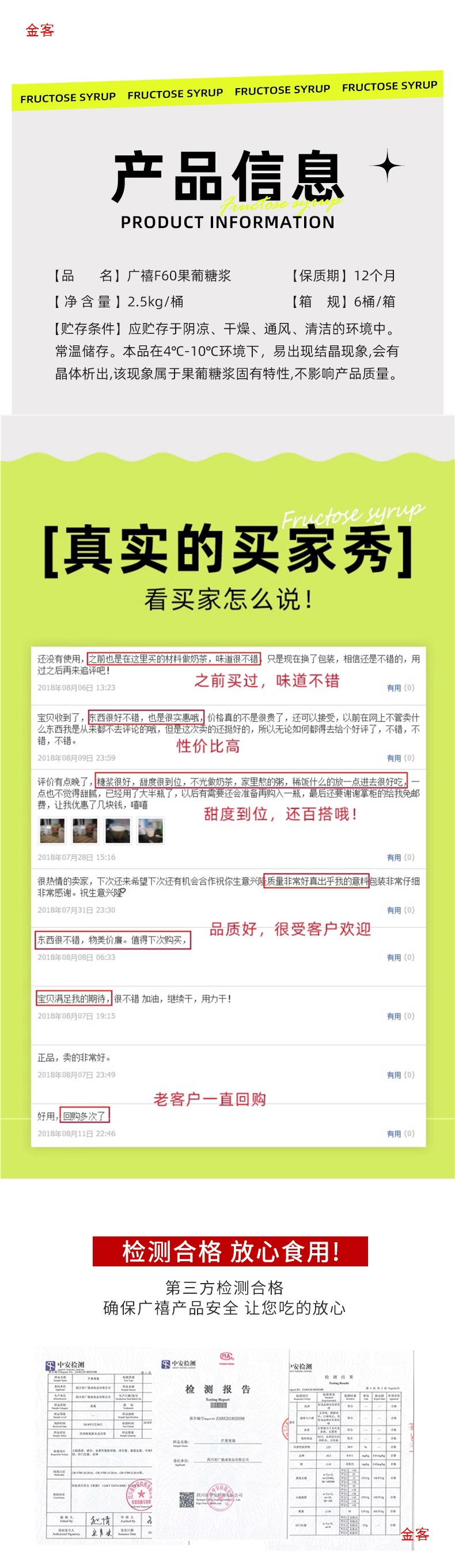 F60 фруктоза 2,5 кг; Сахарный сироп из бамбуковой трости 1,2 кг.; Сироп из белого сахара 2,5 кг.; Сироп рок-сахарный 2,5 кг; Золотой сироп 2,5кг; Сироп морской соли 2,5кг; Сироп 0 калорий 2 кг.; Сироп из коричневого сахара 2,5 кг.; Сироп из коричневого сахара 2,5 кг.; Концентрированный сок личи Гуанси 2,5 кг; Комплексный фруктовый чай со вкусом 2,5 кг.; Лимонный фруктовый мед 2,5кг