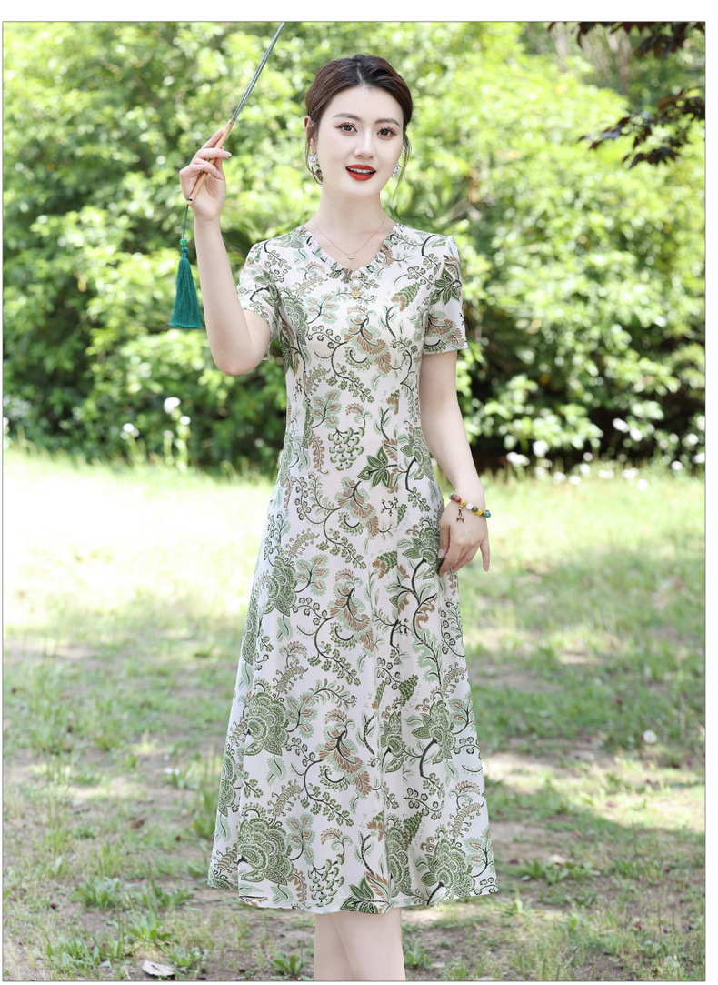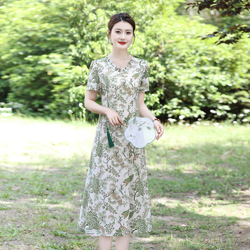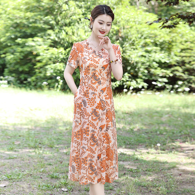 2025 новое платье с короткими рукавами, модное новое платье с цветочным принтом, большой размер, скрывающее живот, утягивающая юбка средней длины
