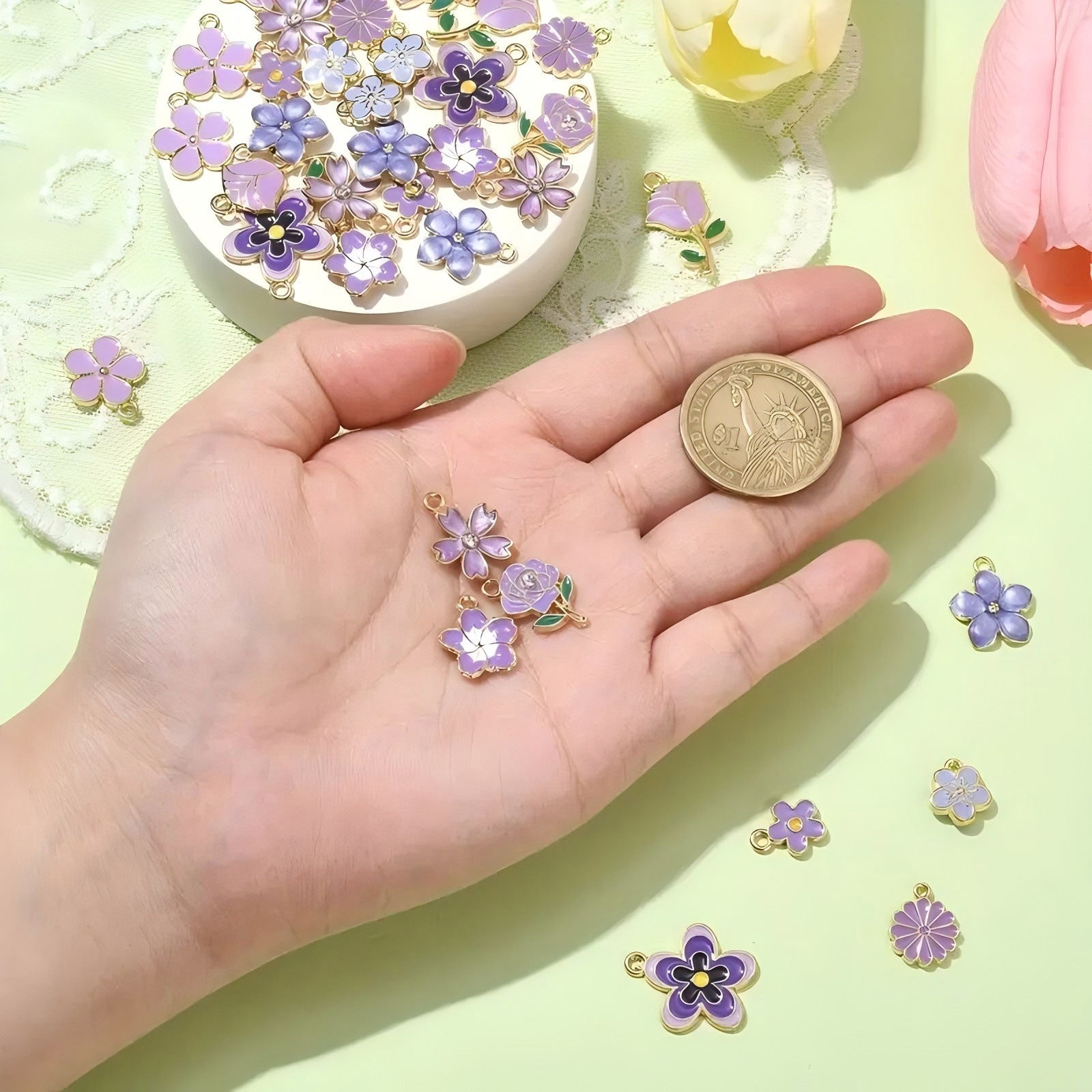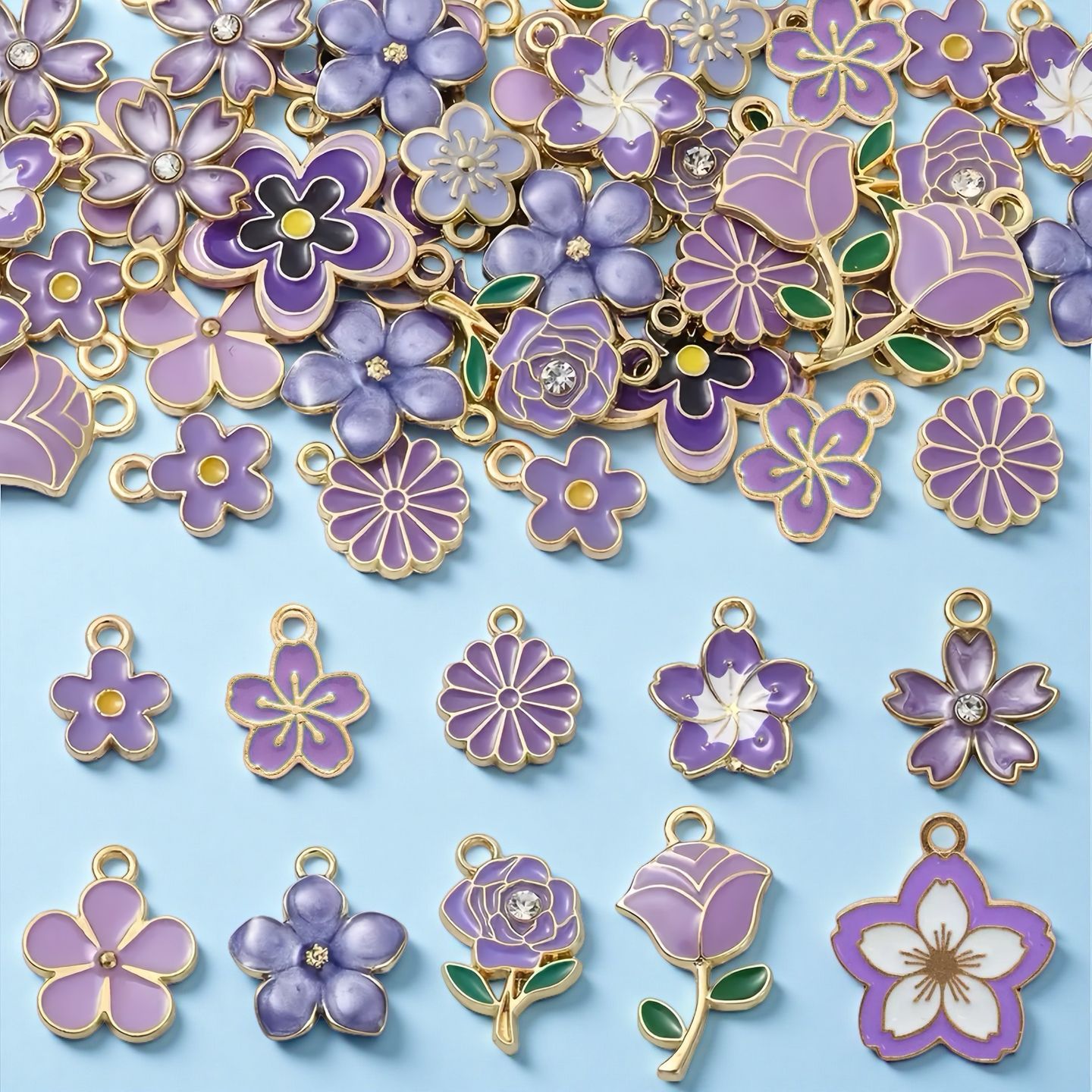 Подвеска-цветок из сплава с каплей масла, фиолетовый цветок, DIY ожерелье, браслет, серьги, брелок, подвеска для сумки, аксессуары
