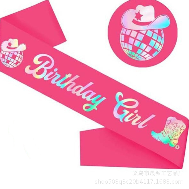 Дискотека Ковбойская девушка День рождения Ремень на плечо Лента Этикетный ремень Розовый Ковбойская вечеринка День рождения Украшение