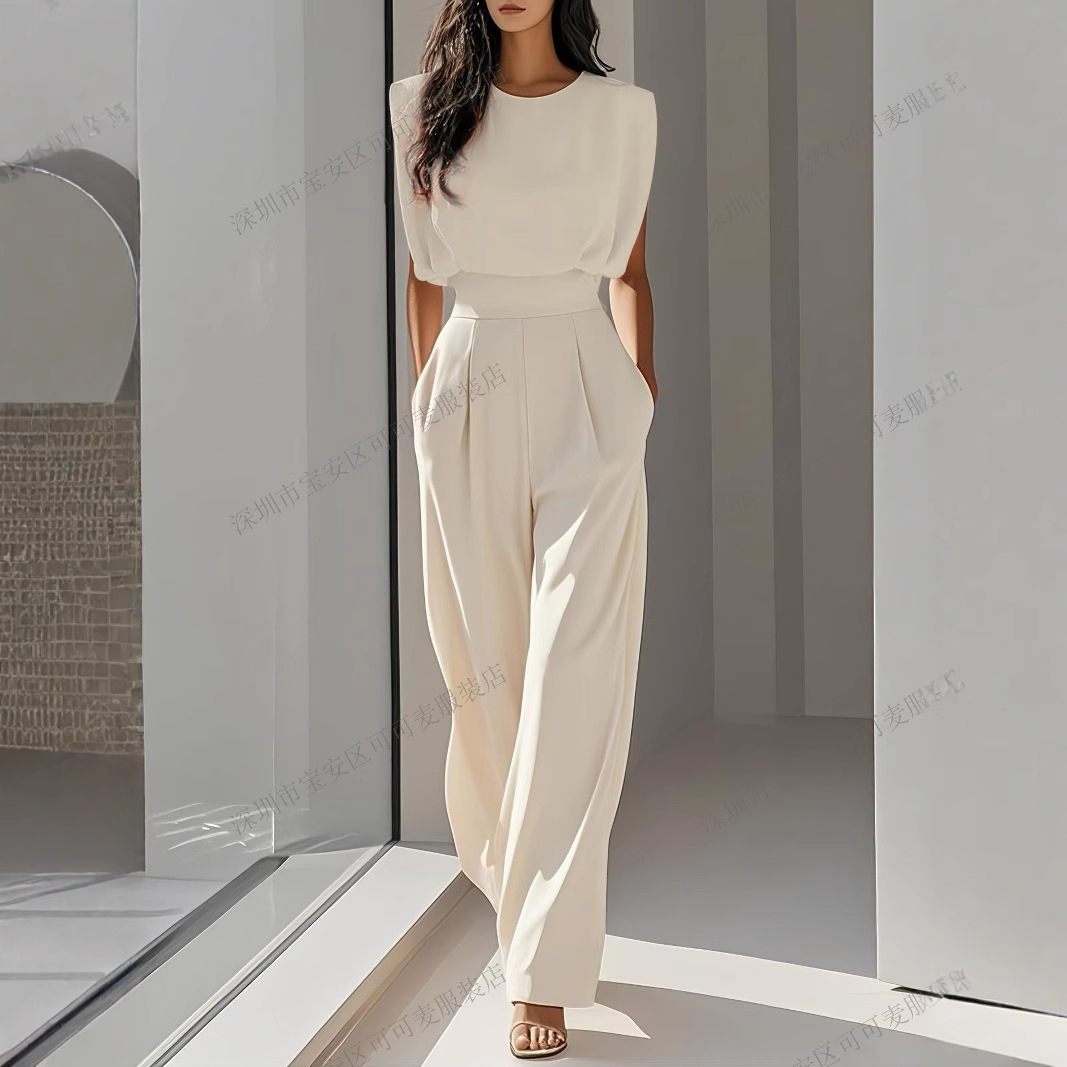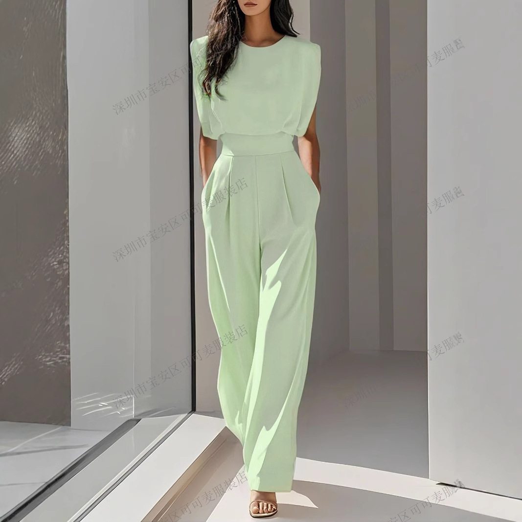 Трансграничная внешняя торговля, европейский и американский стильный новый женский модный элегантный летний однотонный комбинезон для похудения талии
