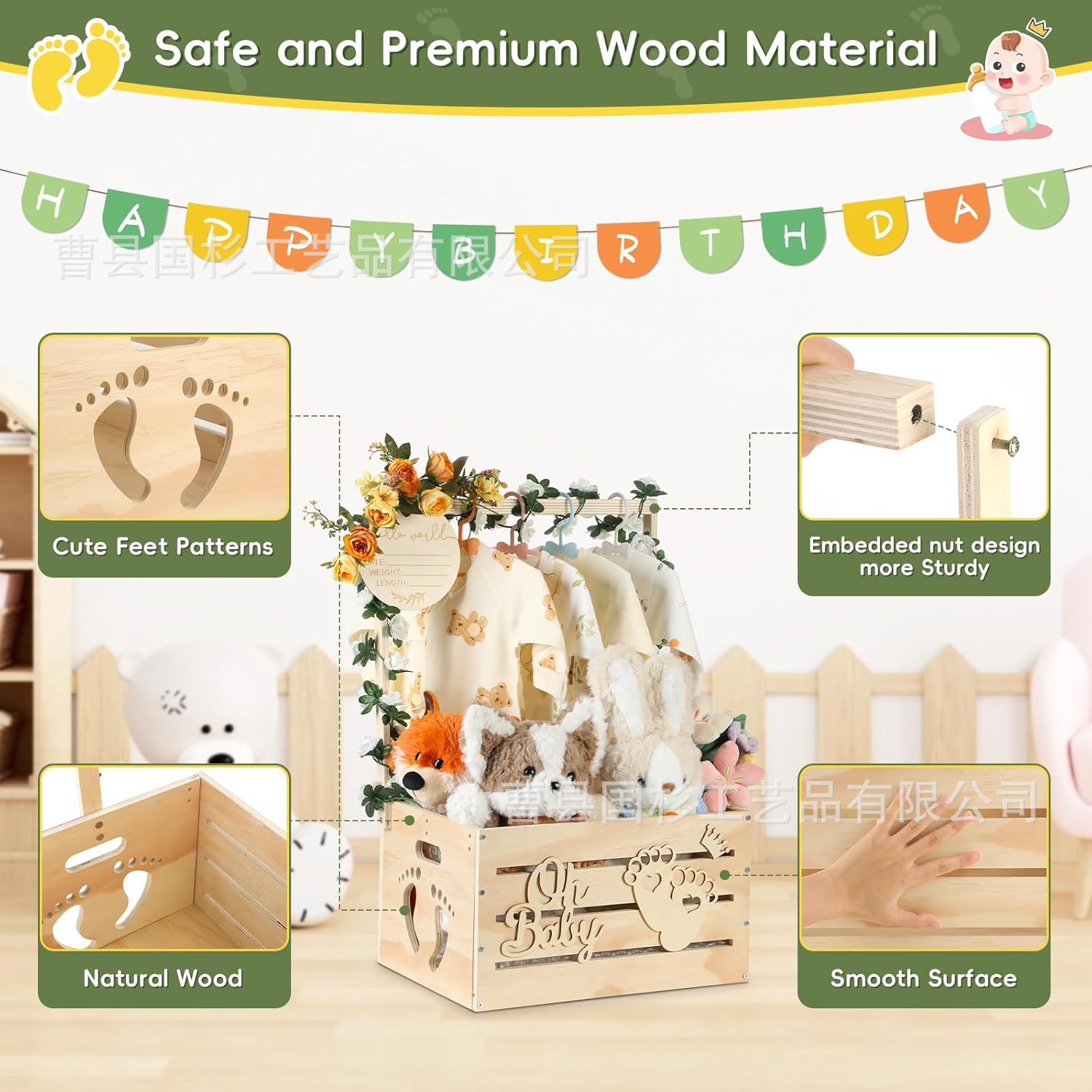 Деревянный ящик для хранения детских товаров, корзина для хранения домашней одежды и игрушек, упаковка для подарков новорожденным, деревянный ящик для хранения