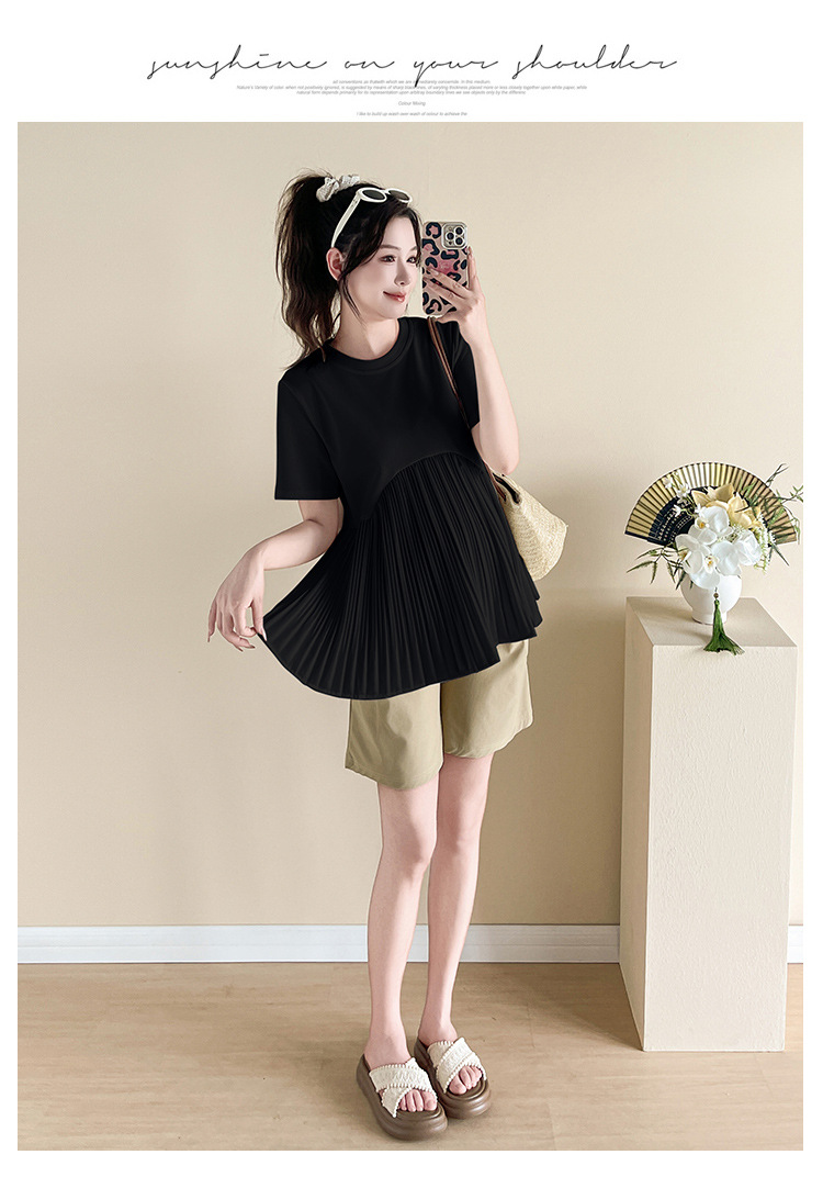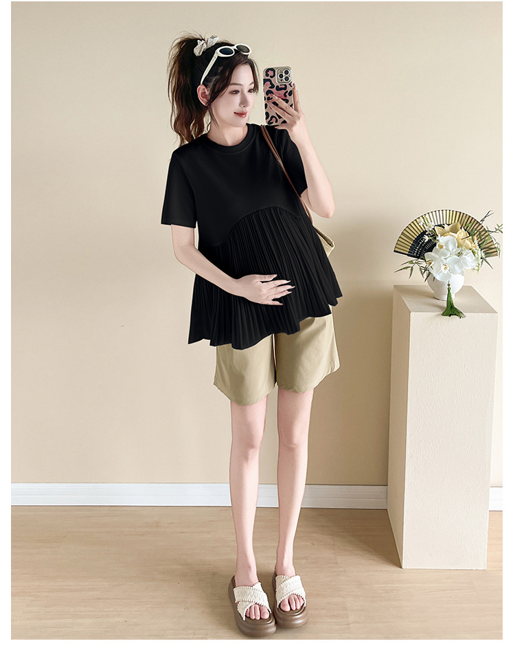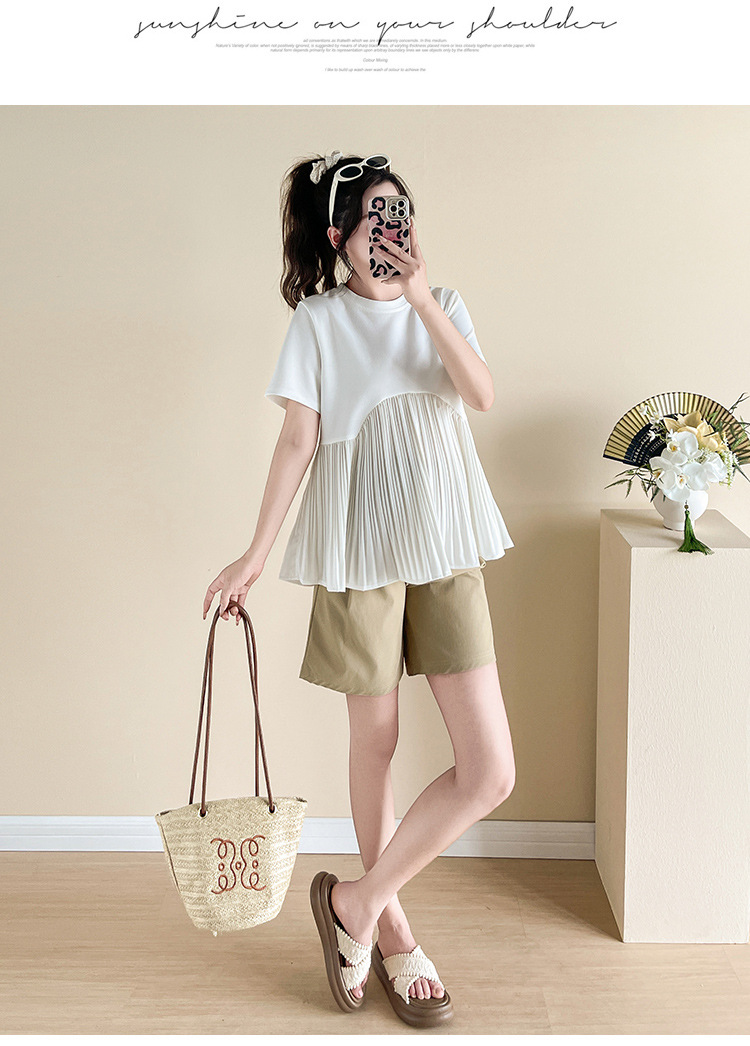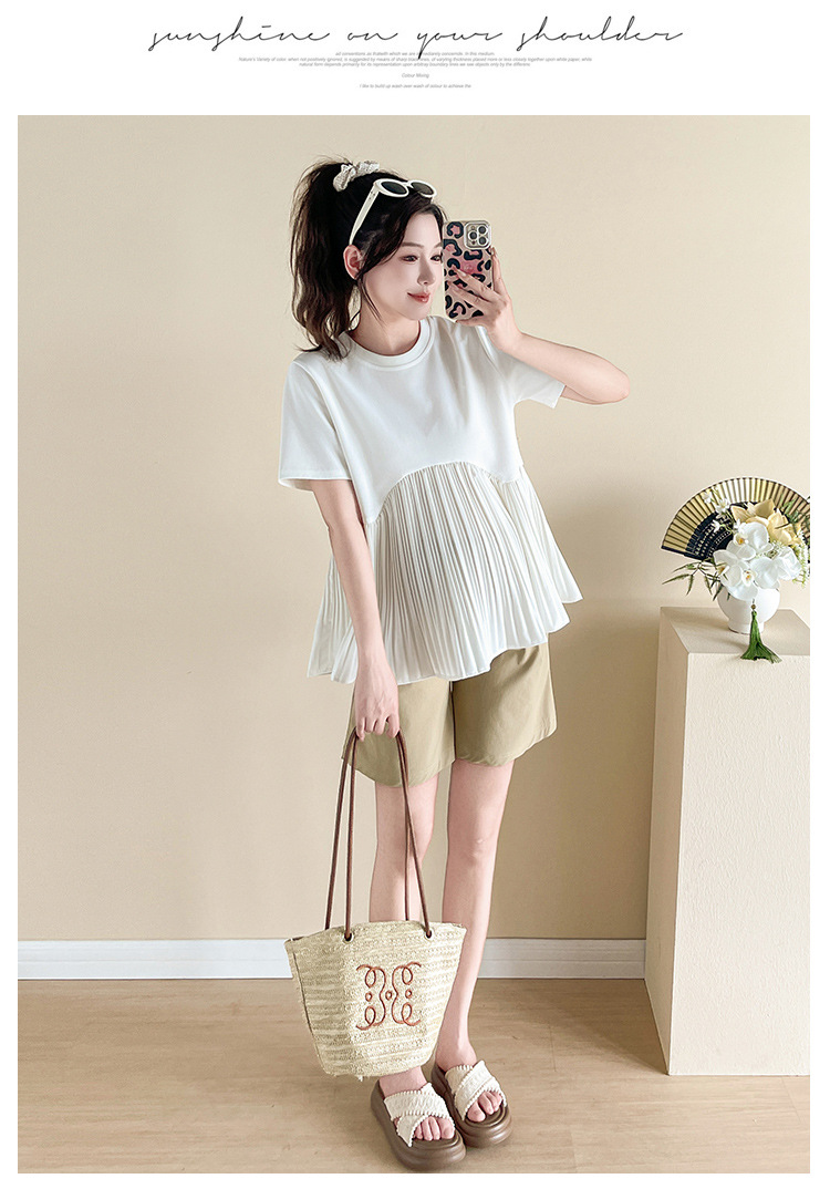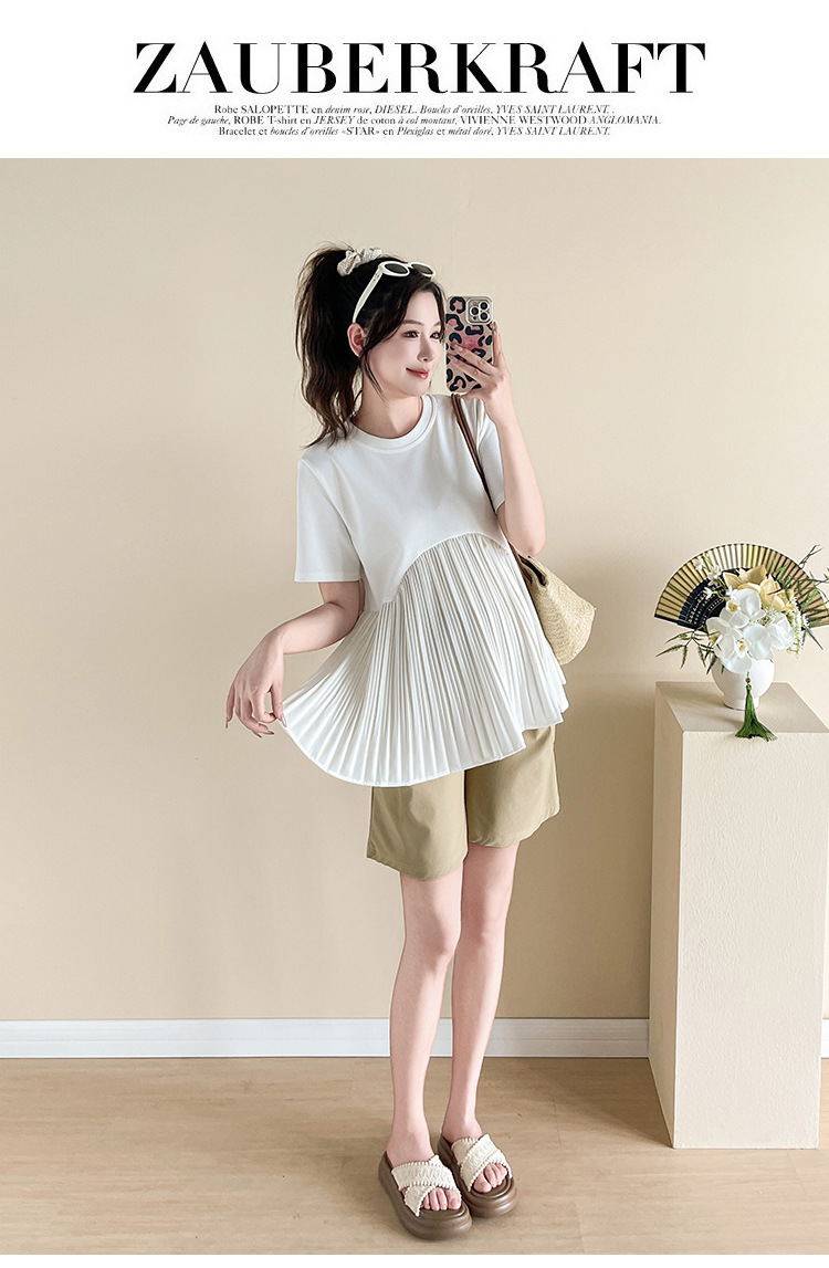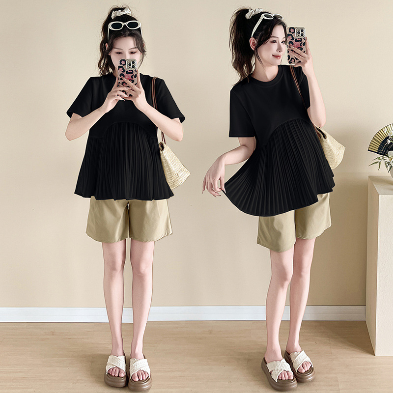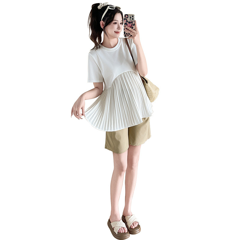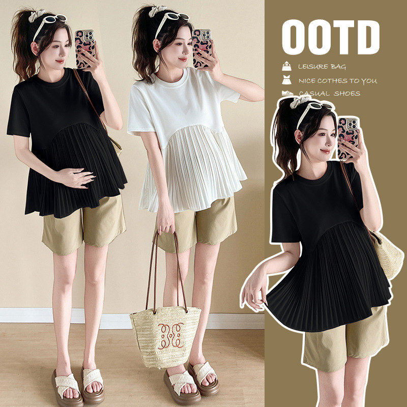 Одежда для беременных 2025, летняя новая свободная модная универсальная милая модная модная верхняя одежда для мам, уменьшающая возраст