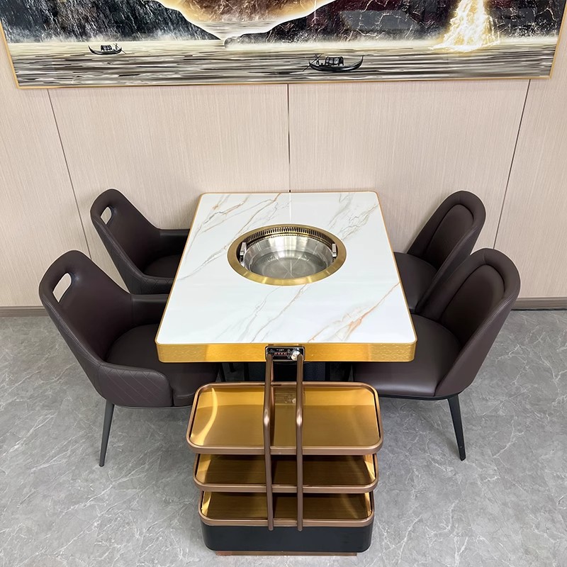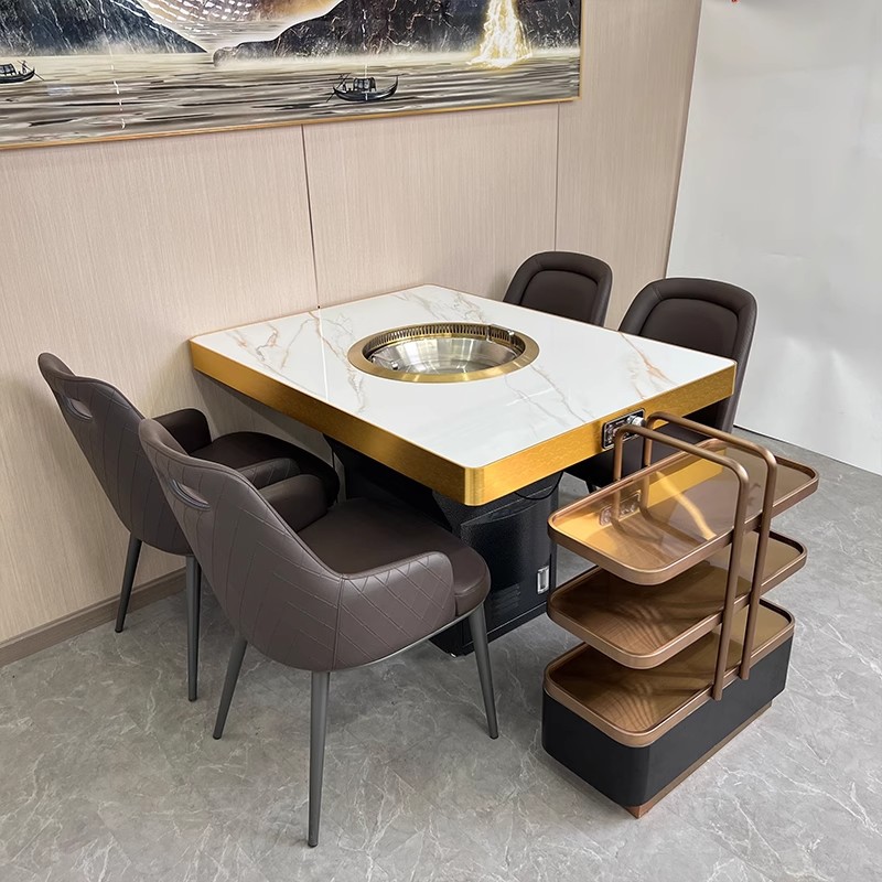 Прямые продажи с фабрики, бездымный стол для горячего горшка, индукционная плита, встроенный очиститель, сланец, легкие роскошные шампуры для барбекю, обеденный стол и стулья, коммерческие