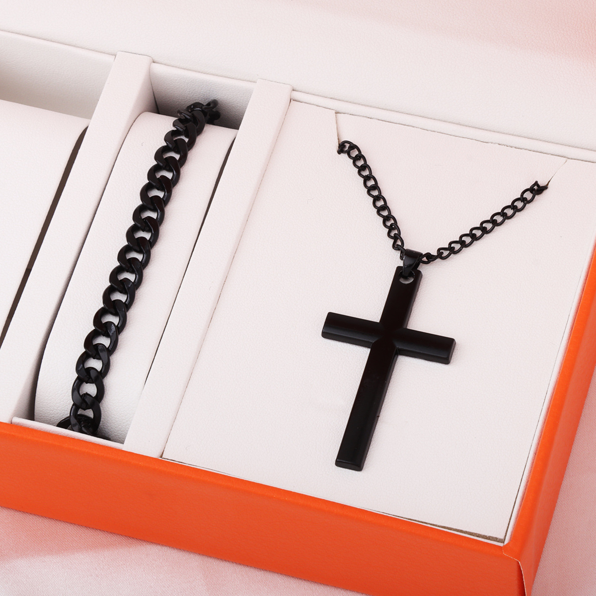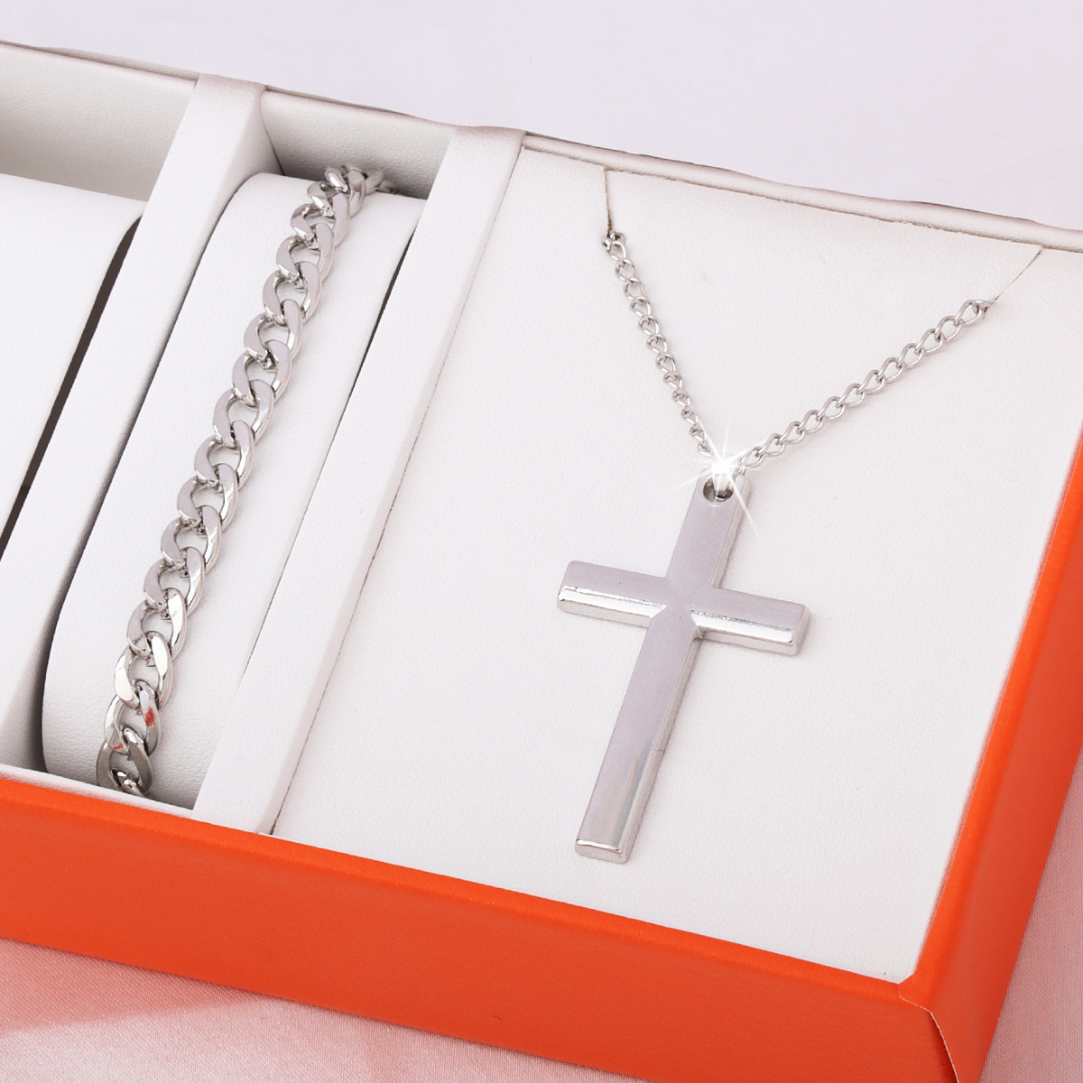 Европейские и американские трансграничные горячие распродажи крест ожерелье для мужчин и женщин дикий хип-хоп пара подвеска браслет ювелирный набор завод оптом