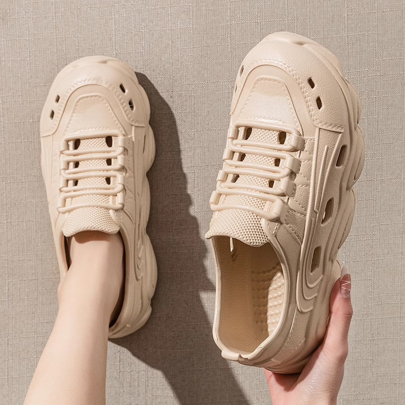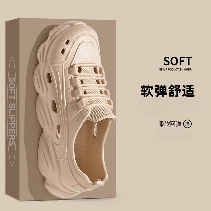 Весенне-летние сабо, цельные повседневные уличные туфли для пар, полностью закрытые, из материала EVA, с пушистой противоскользящей подошвой, увеличивающие рост.