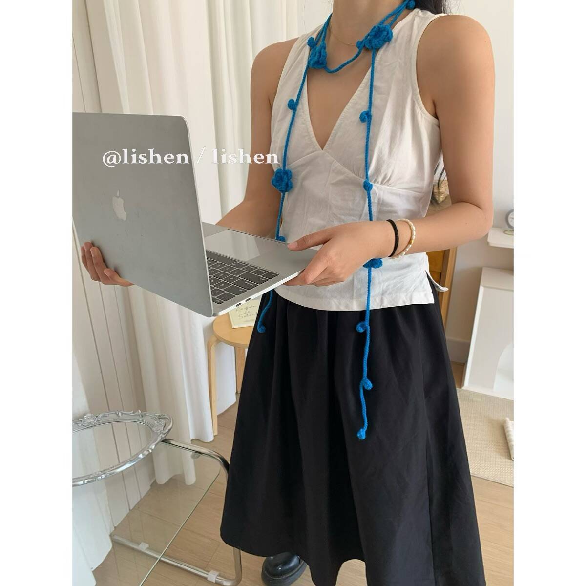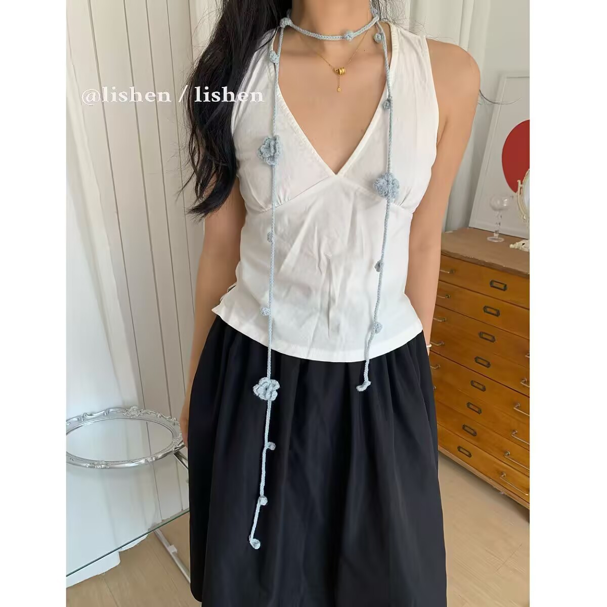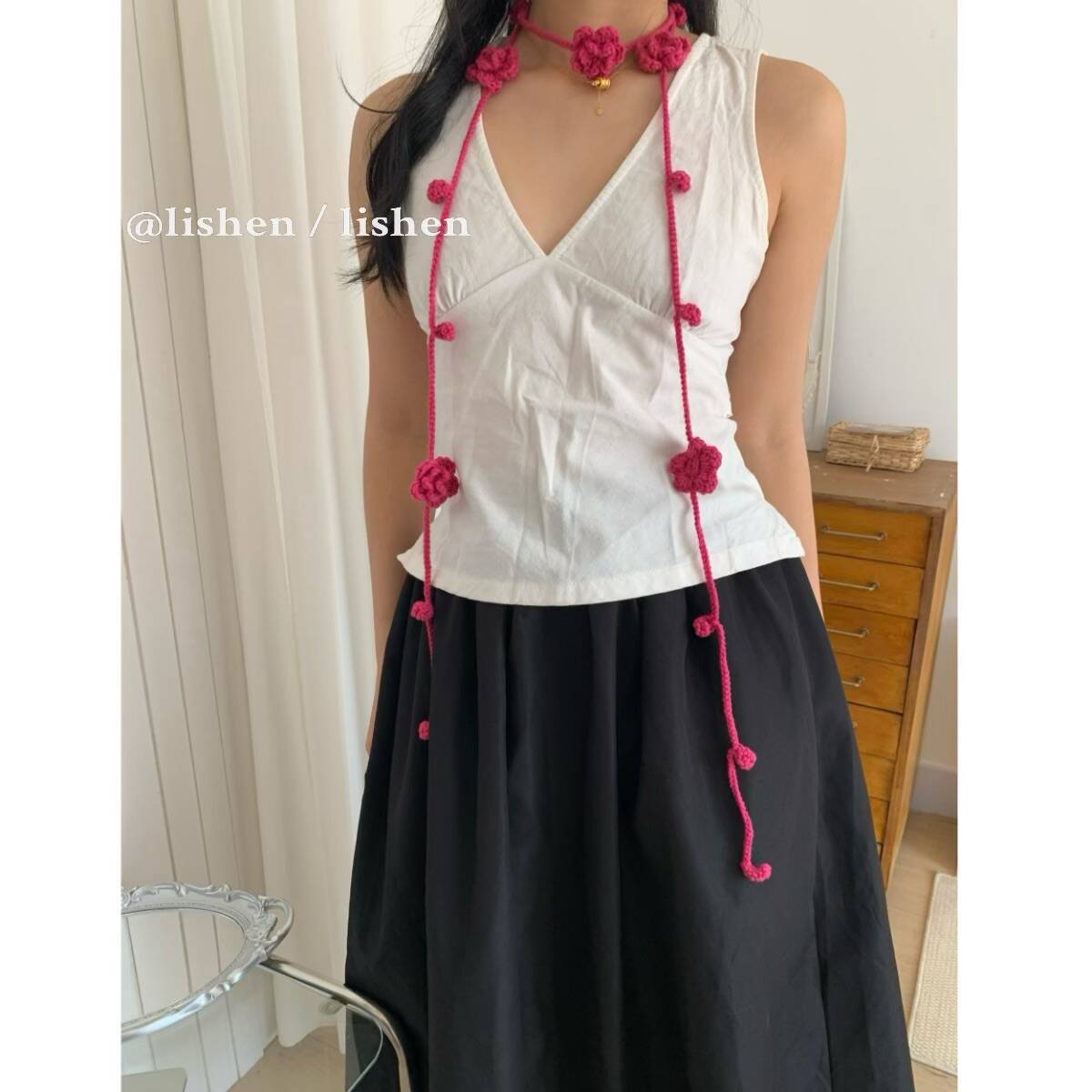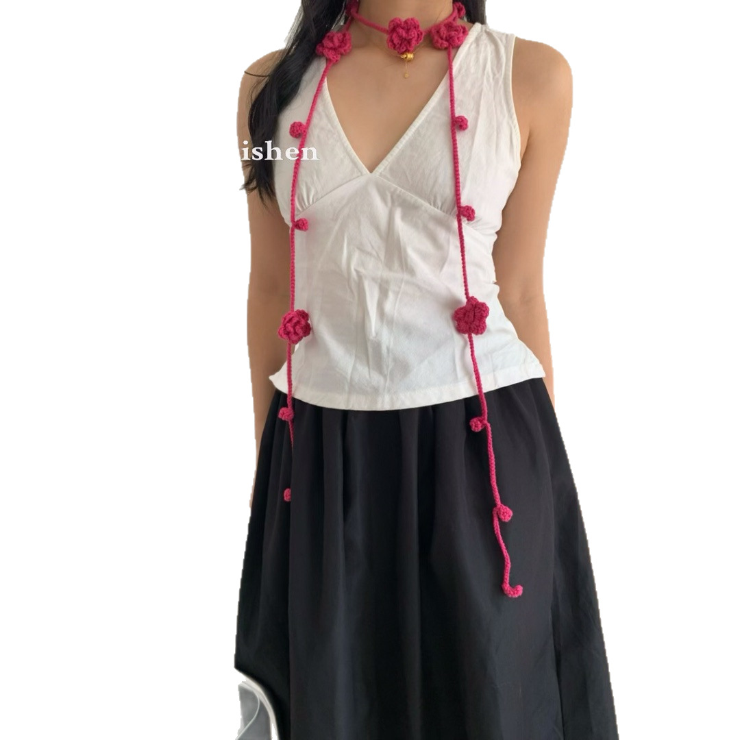 Нишевый узкий длинный пояс ручной работы с красной розой, женский шарф y2k, нишевые аксессуары для шеи, ожерелье